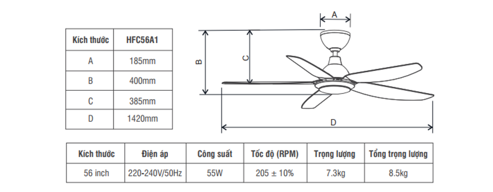 Với thiết kế hiện đại, tính năng vượt, quạt trần 5 cánh hiệu suất cao HFC56A1 của Roman chính là sự lựa chọn hoàn hảo của bạn trong mùa hè này.