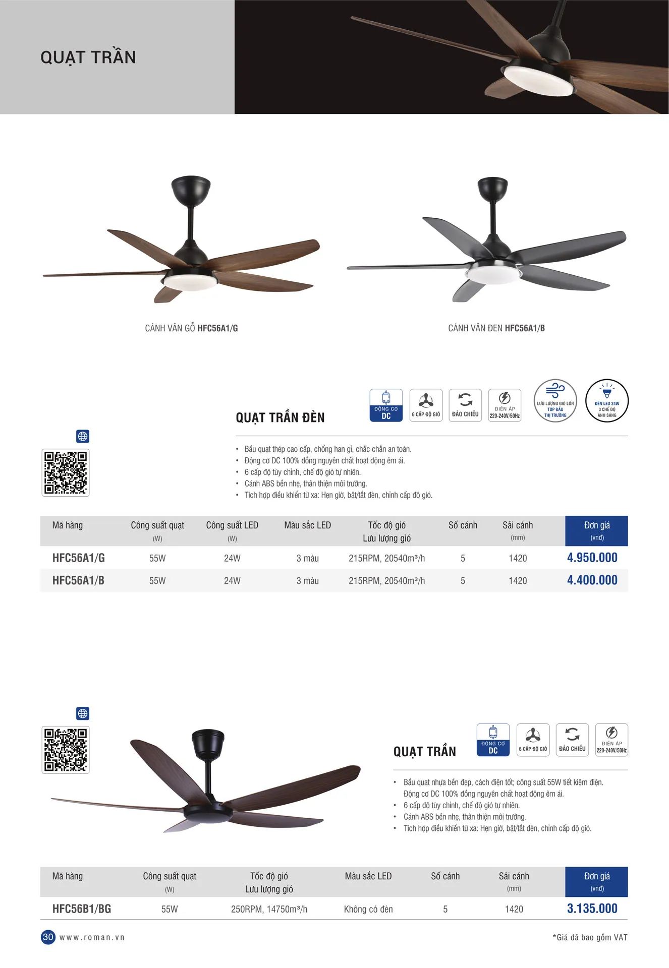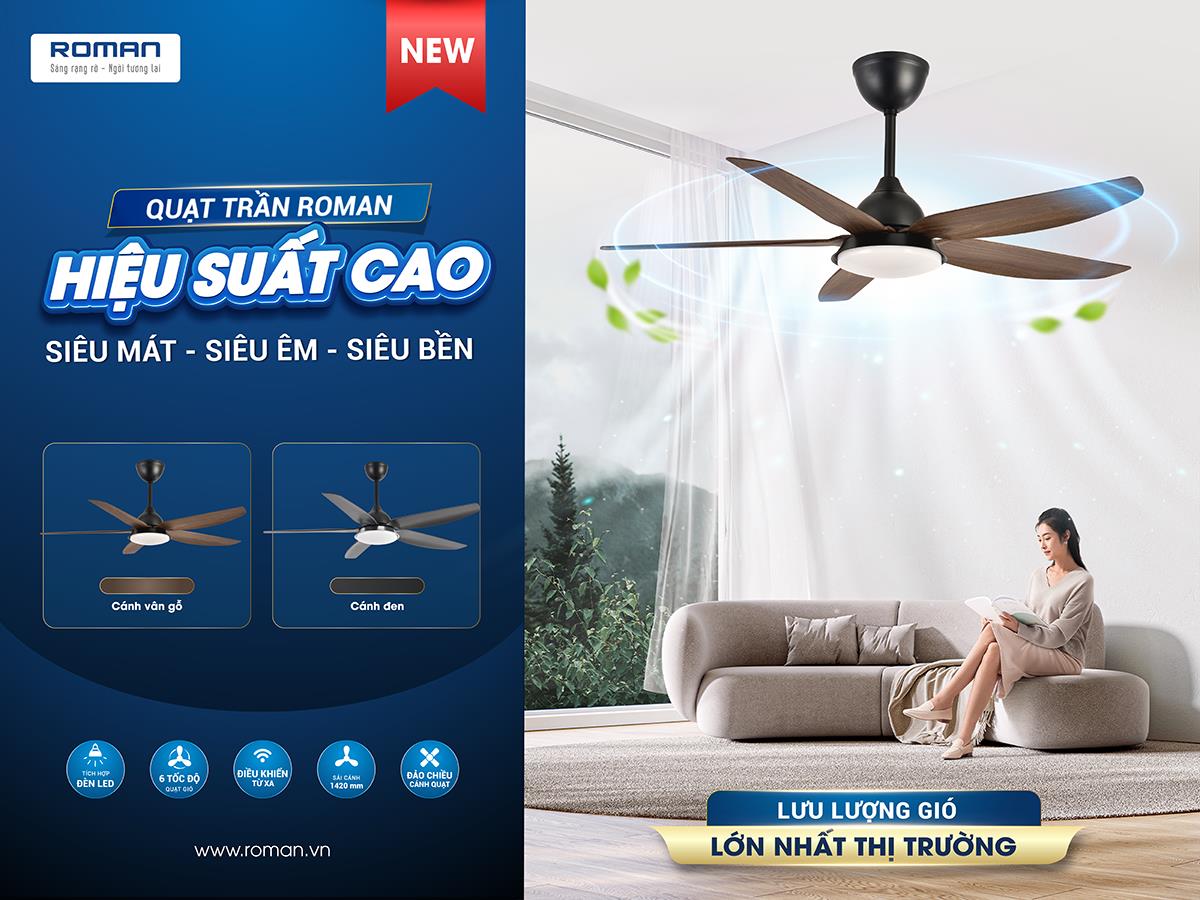 Với những nghiên cứu, nắm bắt xu hướng tiêu dùng về sản phẩm quạt trần không chỉ làm mát trong gia đình mà còn là sản phẩm trang trí cho không gian, Roman cho ra mắt dòng sản phẩm quạt trần 5 cánh hiệu suất cao HFC56A1 mới sang trọng, hiện đại và hơn hết là "Siêu mát - Siêu êm - Siêu bền".
