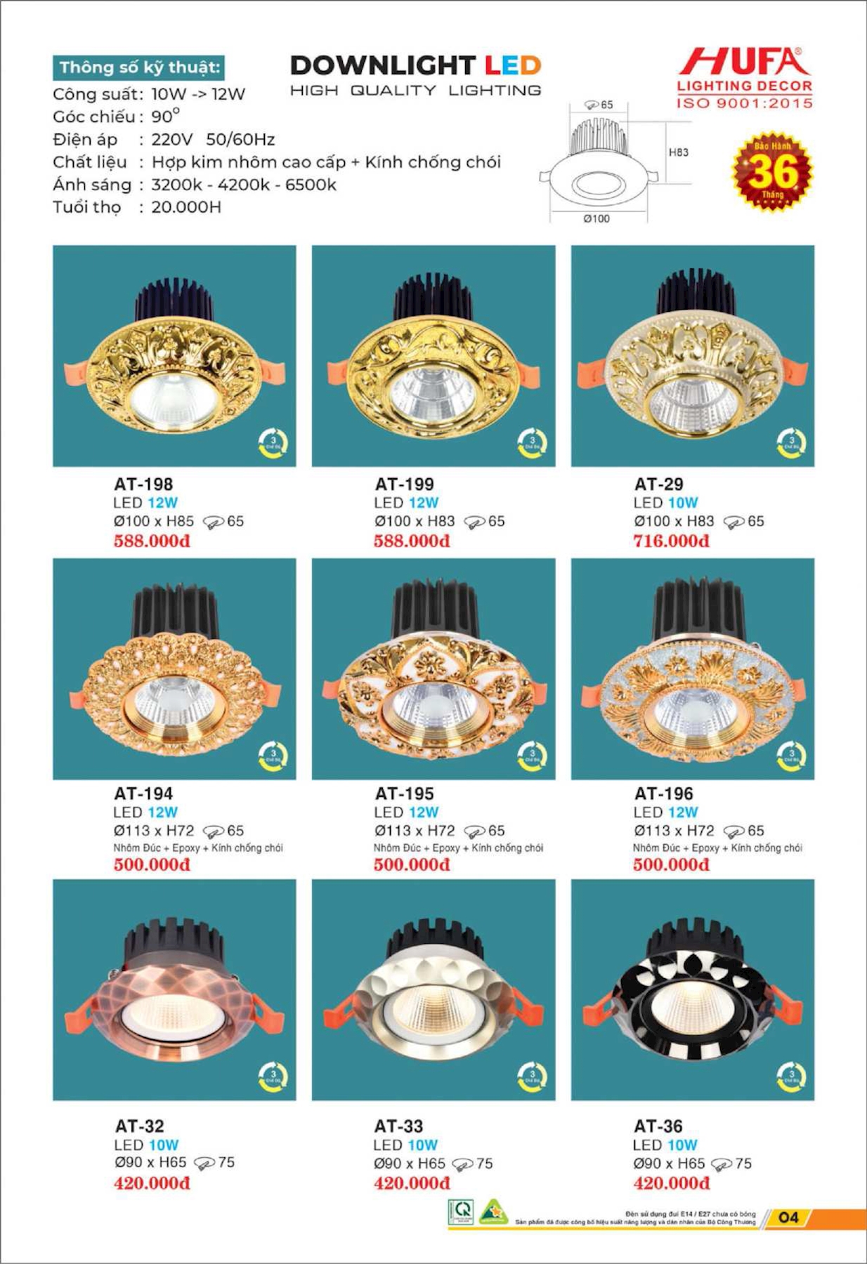 Đèn Downlight âm trần Ø90 x H65 AT-32 LED