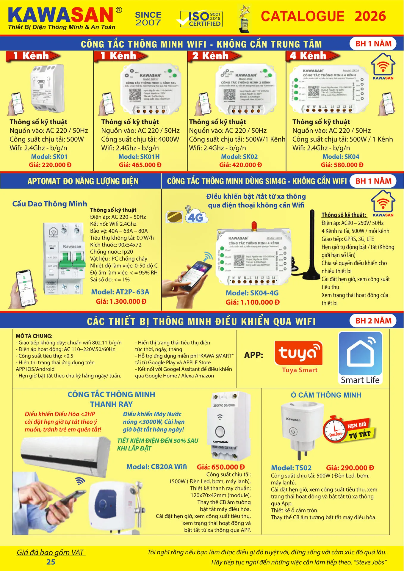 Công tắc thông minh Kawasan SK04-4G dùng sim 4G