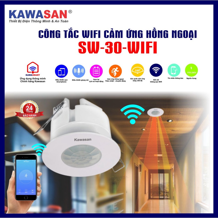 Công tắc WIFI cảm ứng hồng ngoại SW30-Wifi, là thiết bị cảm biến nhận diện chuyển động và thân nhiệt của người tự động bật – tắt đèn. Đặc biệt của SW30-Wifi này có thêm chức năng điều chỉnh bật – tắt và tạo kịch bản hẹn giờ qua App Kawa Smart trên smartphone thông qua kết nối Wifi. SW30-Wifi là một cải tiến vượt bậc, áp dụng công nghệ IOT. Điều khiển hoàn toàn chủ động bất kỳ nơi đâu. Thiết kế dạng âm tường, đảm bảo tính thẩm mỹ cao cho không gian lắp đặt.