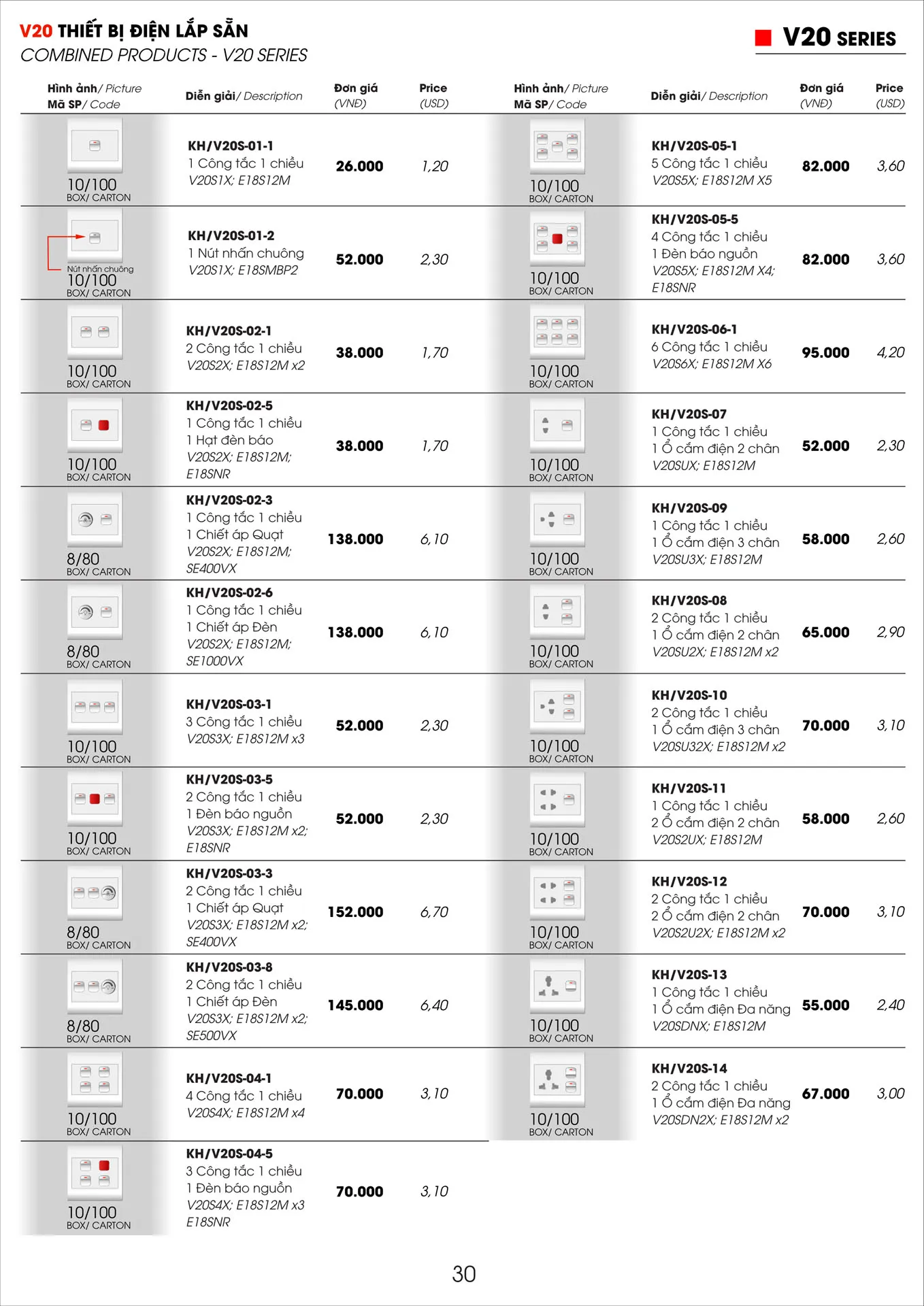 Bộ 2 Công tắc 1 chiều + 1 Ổ cắm Đa năng LiOA KH/V20S-14 (V20SDNX, E18S12M)