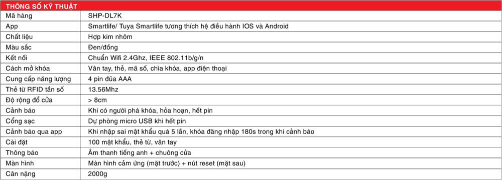 Khóa Cửa Wifi Thông Minh SHP-DL7K