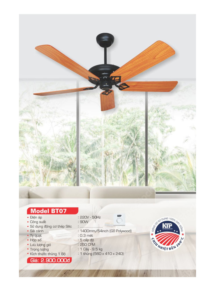 | Sải cánh | 1320mm - 5 cánh gỗ |
