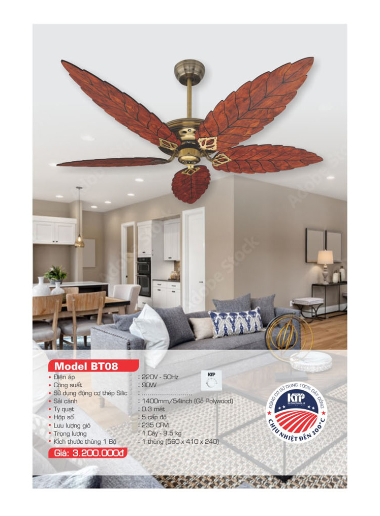 | Sải cánh | 1400mm - 5 Cánh gỗ |