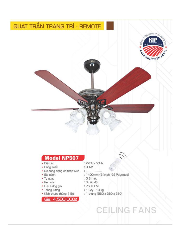 Quạt trần đèn trang trí 5 cánh KTP NP507