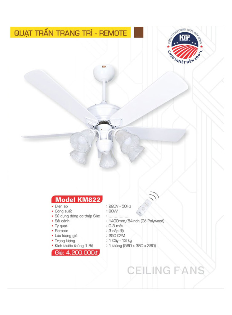 Quạt trần đèn trang trí 5 cánh KTP KM822