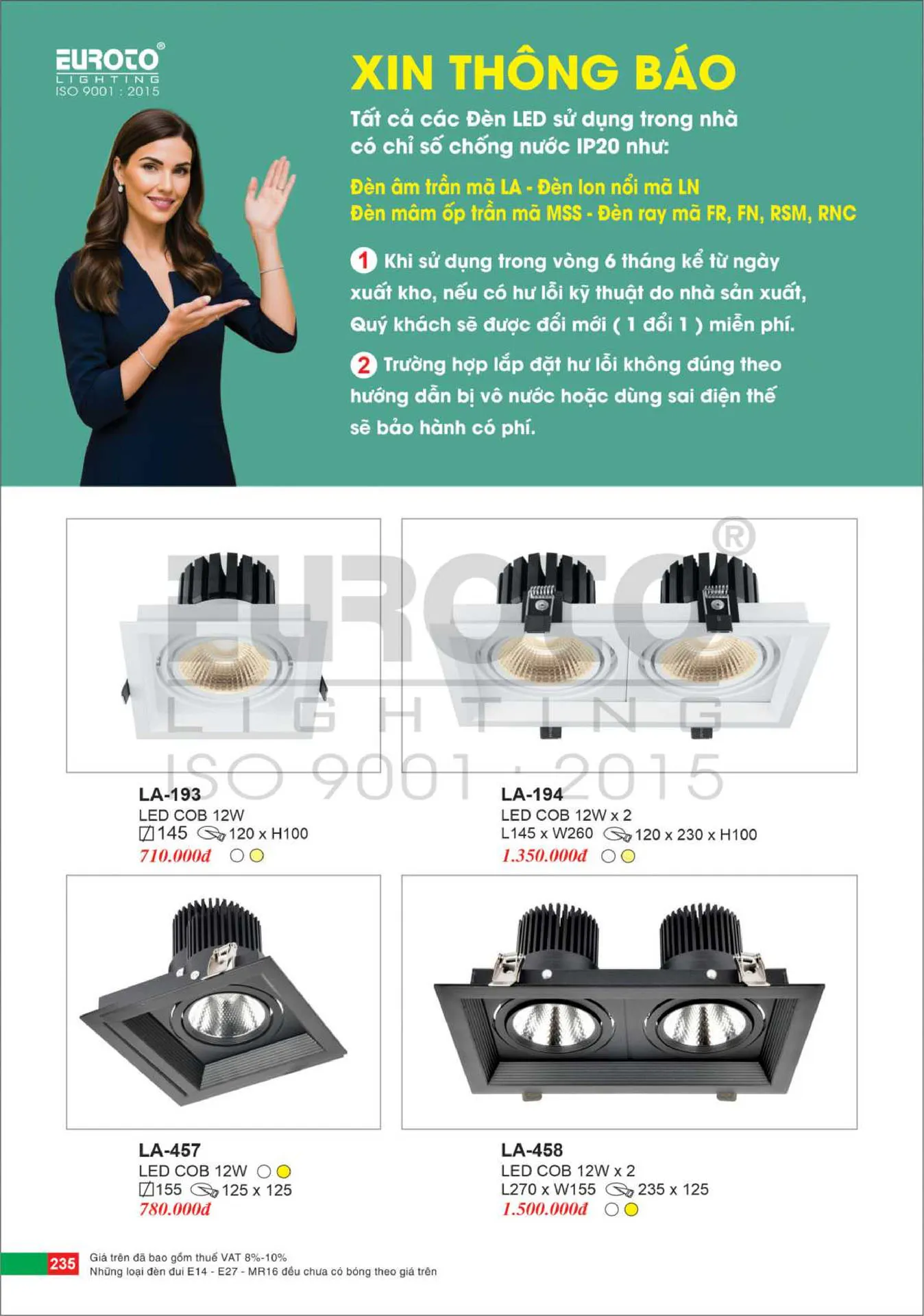 Đèn Led Âm Trần Vuông Euroto LA-193 COB 12W