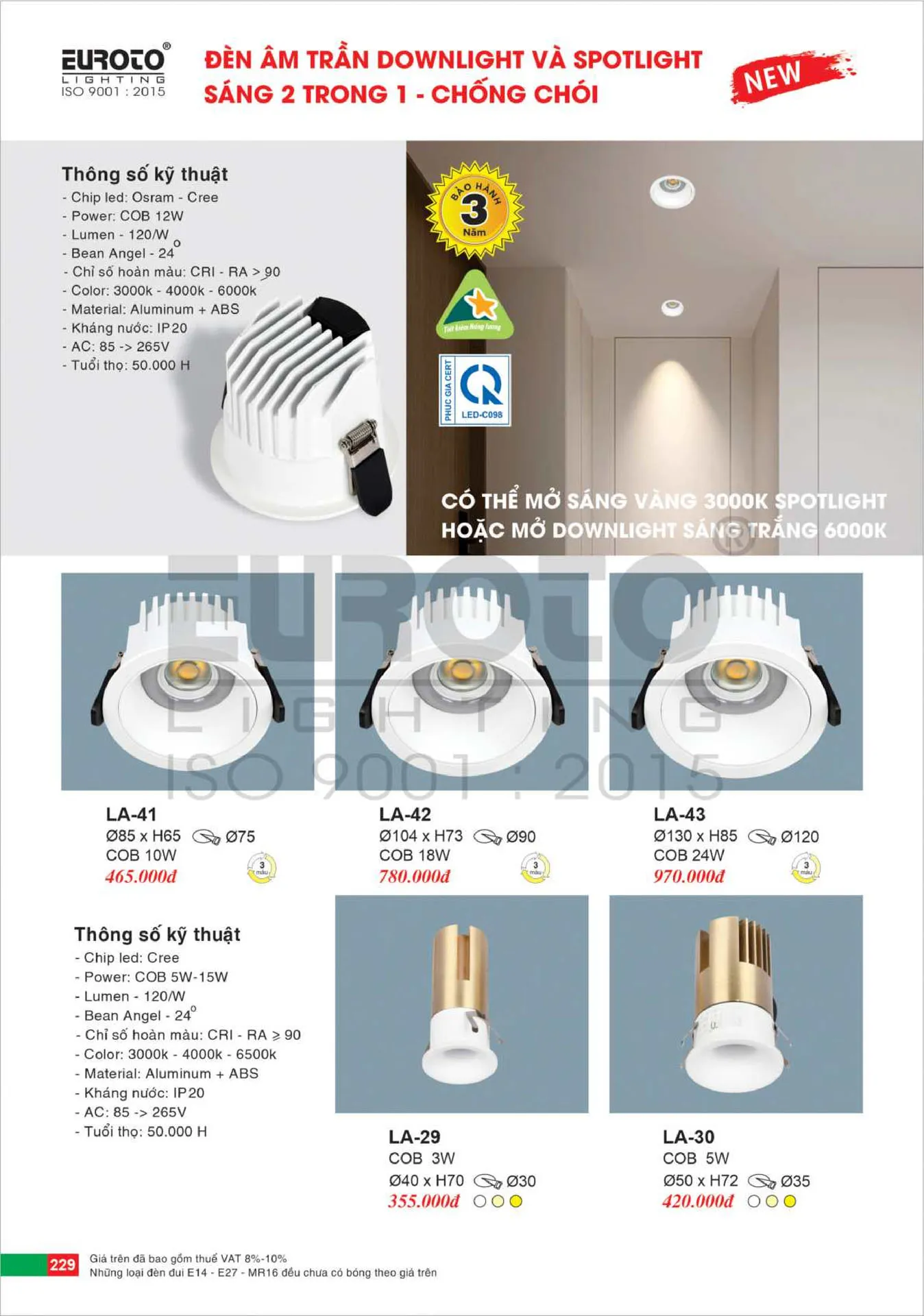Đèn âm trần Euroto LA-29 Ø30/40*H70 3W
