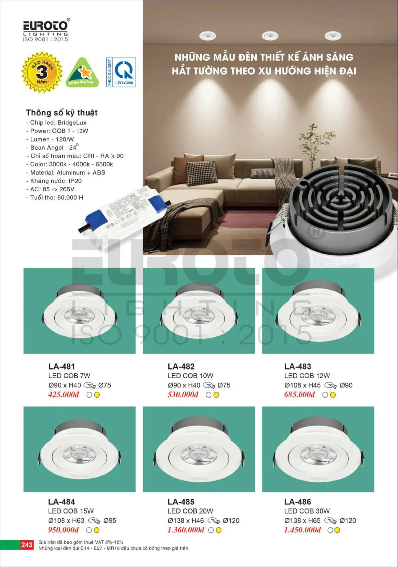 Đèn Led Âm Trần Chiếu Điểm Euroto LA-482 10W
