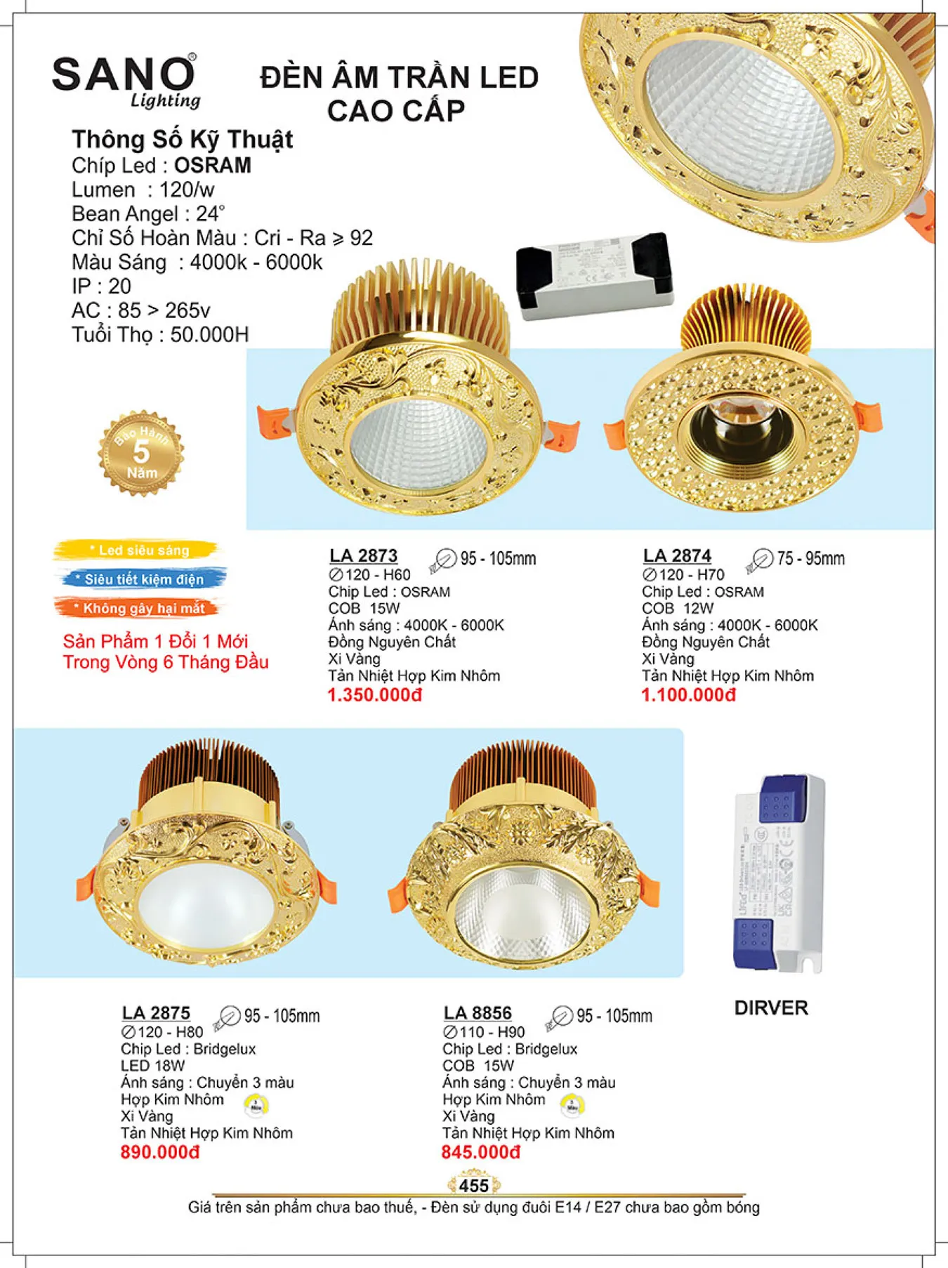 Đèn âm trần trang trí Sano LA 8856 15W Ø95-105/110xH90