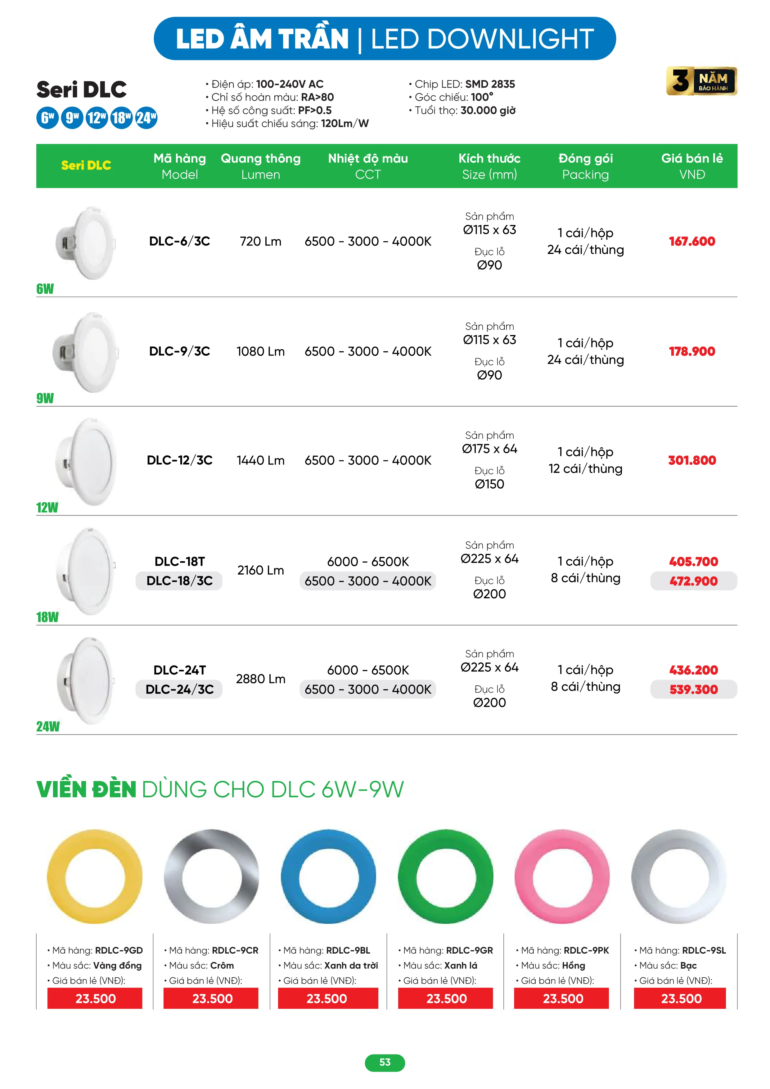 Đèn Led Downlight DLC 3 màu ánh sáng