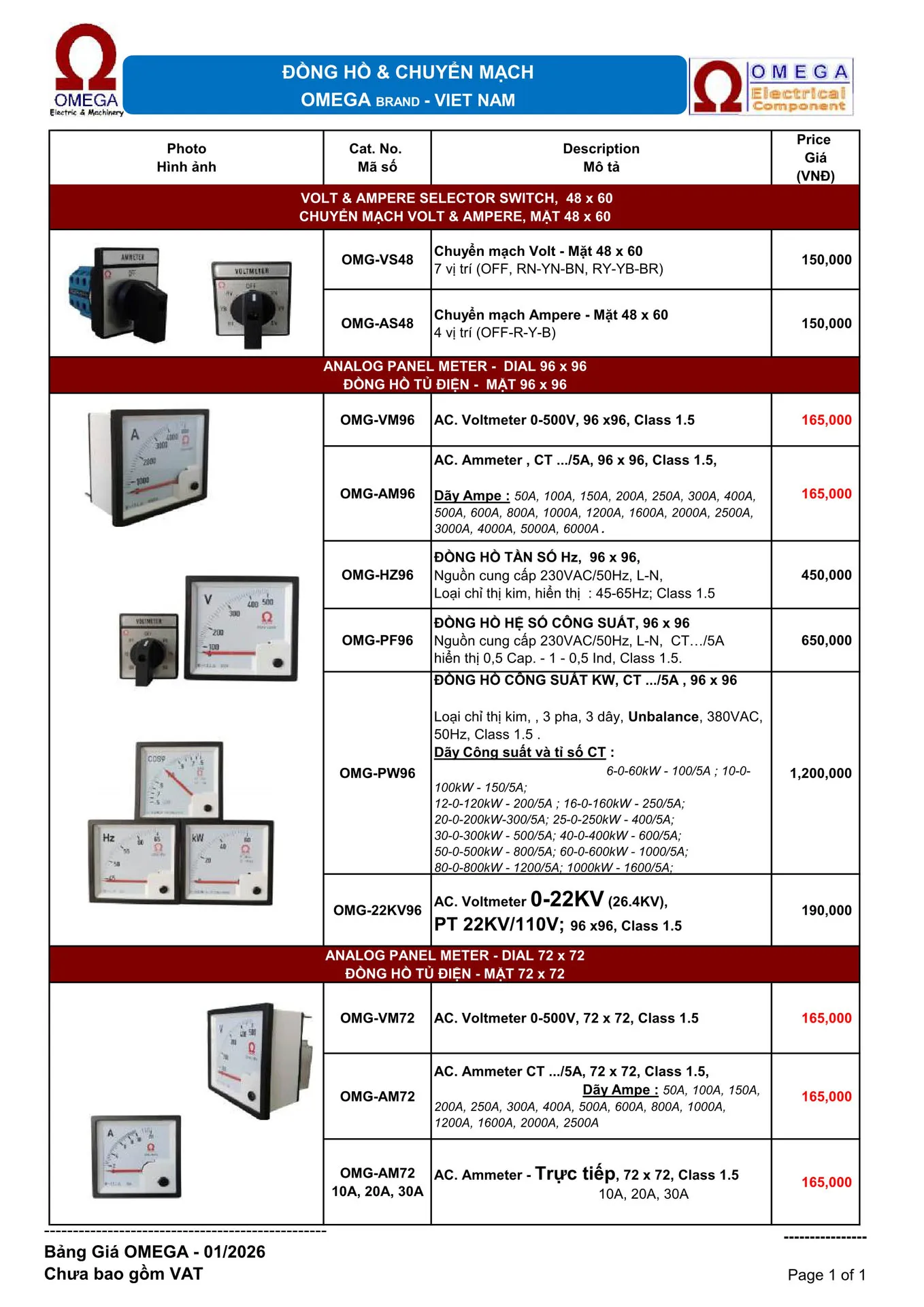 Đồng hồ hệ số công suất Omega OMG-PF96 96 x 96