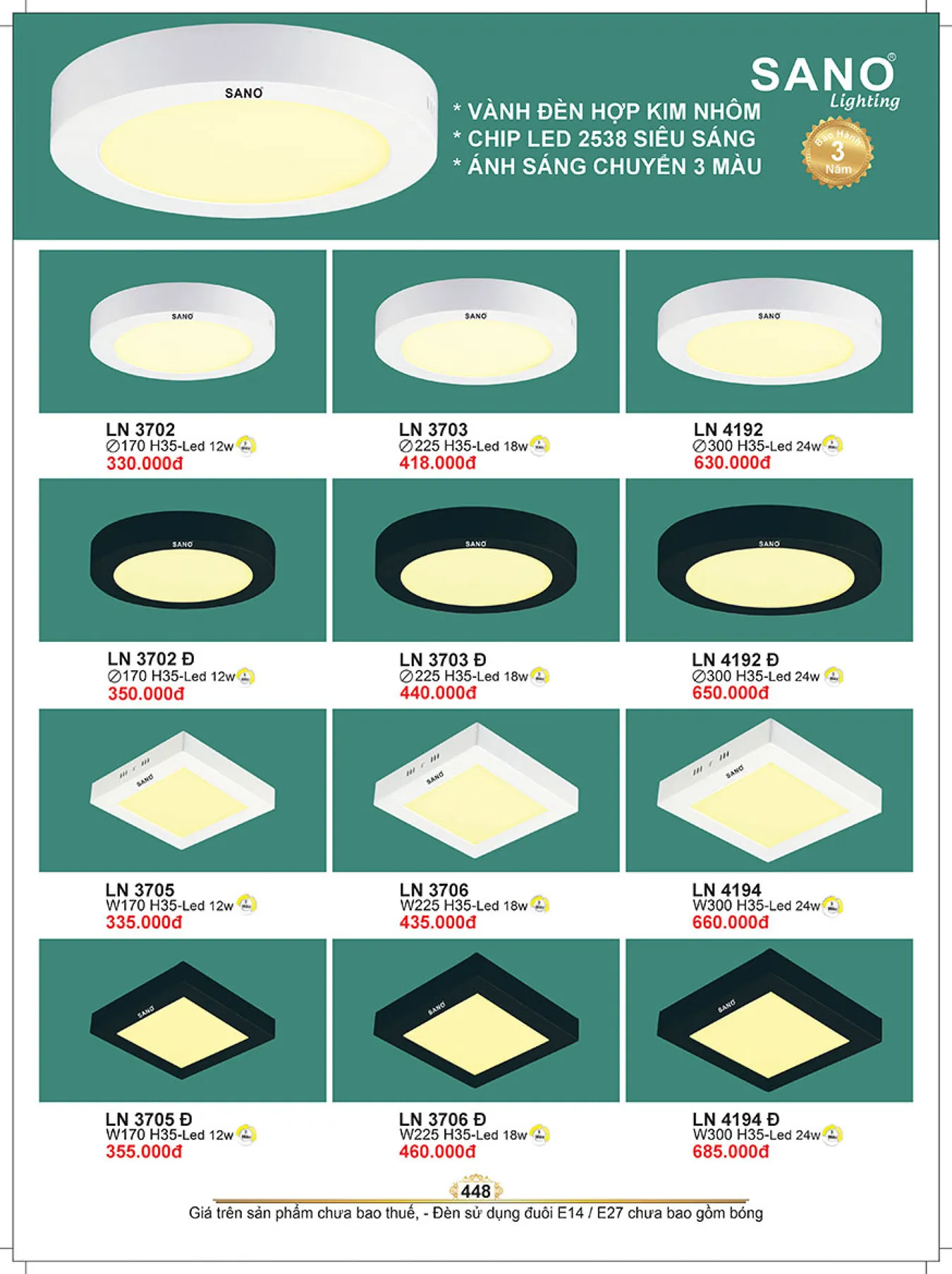 Đèn ốp trần Sano LN 4192Đ Led 24W - Ø300*H35