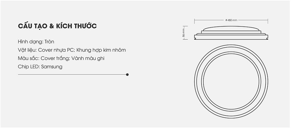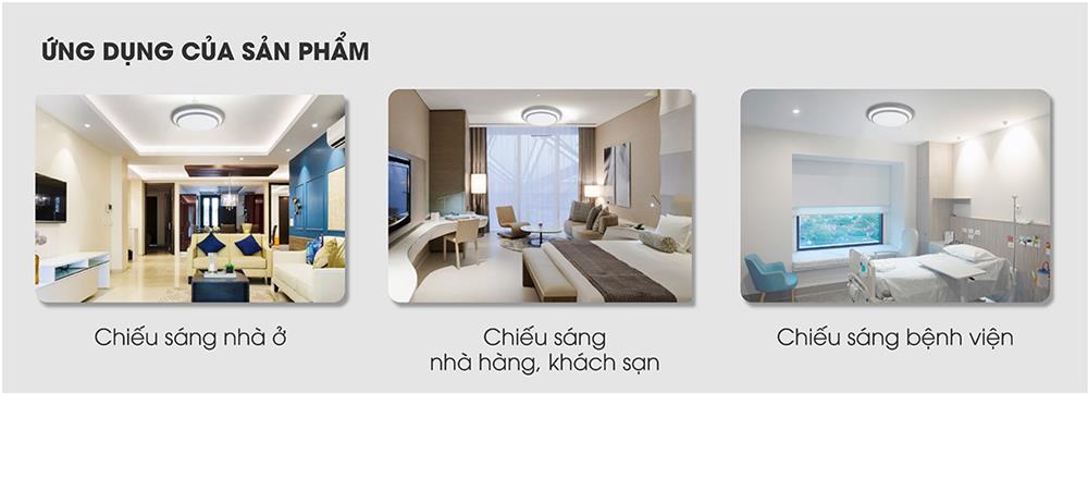 - Tuổi thọ dài 25 000 giờ, ít phải thay thế, dễ dàng lắp đặt, thay thế đèn ốp trần lắp sợi đốt, compact.