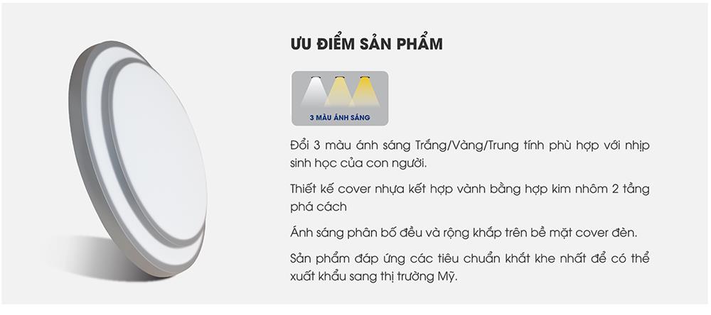 Đèn LED Ốp trần Tròn đổi màu Rạng Đông LN16 ĐM 480/40W