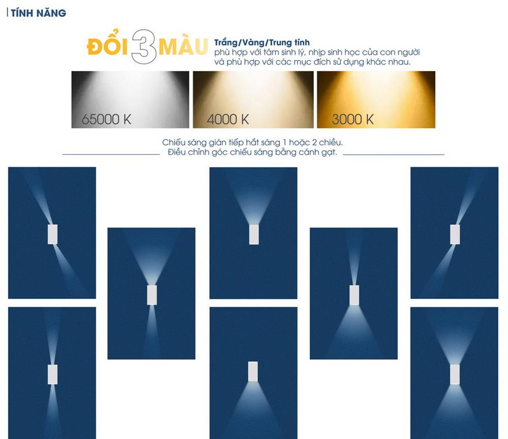 | Đổi 3 màu ánh sáng: | Trắng/Vàng/Trung tính |