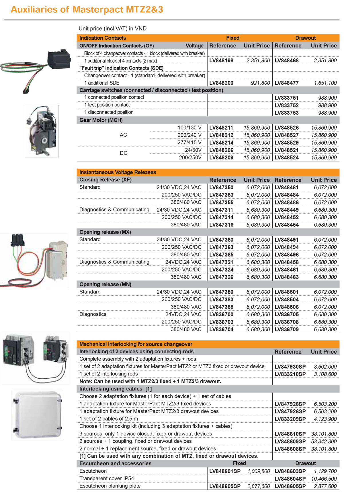 Phụ Kiện Cho Máy Cắt Không Khí ACB - MTZ Schneider