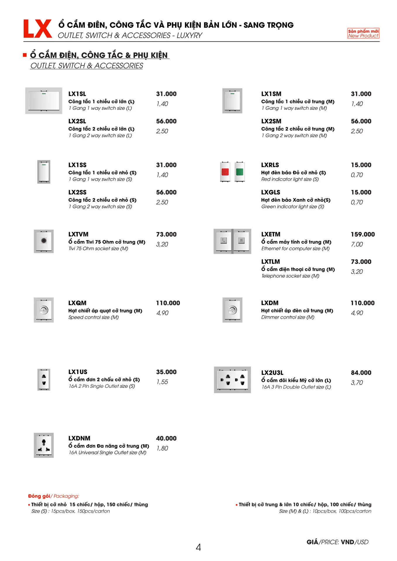 Ổ cắm đơn 2 chấu LiOA LX1US cỡ S