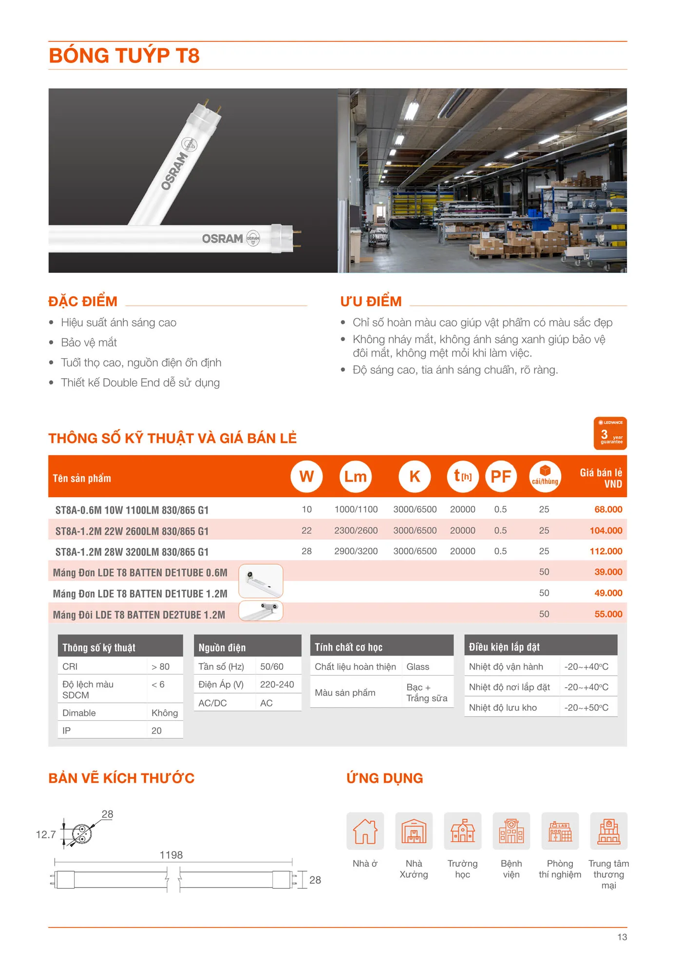 Máng đèn tuýp đơn T8 Osram Ledvance DE1TUBE
