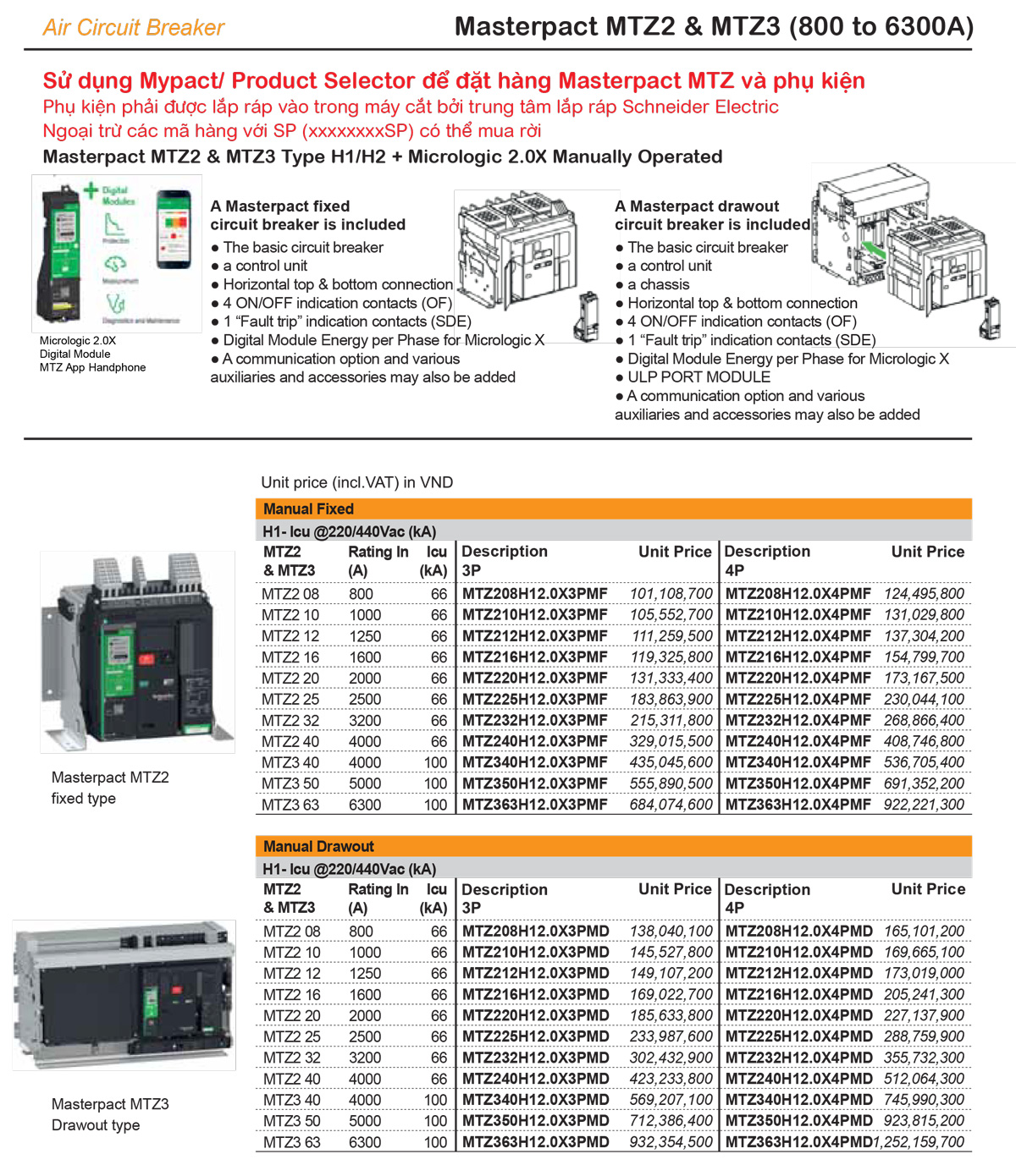MTZ2 ACB 3P 2500A 66KA MTZ2 25 | MTZ225H12.0X3PMD | 273.697.600 | 35% | 177.903.440 |