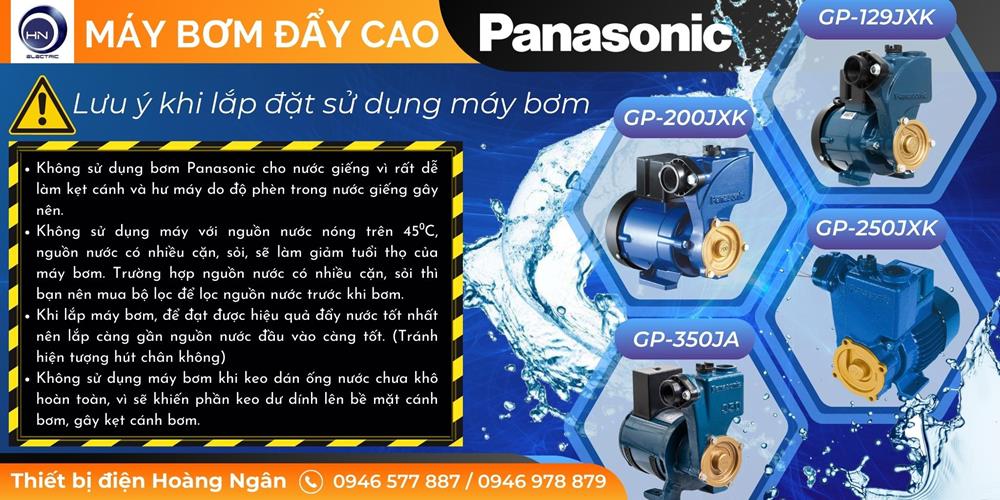 - Không sử dụng bơm Panasonic cho nước giếng vì rất dễ làm kẹt cánh và hư máy do độ phèn trong nước giếng gây nên.