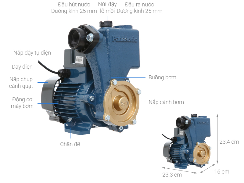 Máy bơm đẩy cao Panasonic được thiết kế với kiểu dáng đơn giản, gọn nhẹ, mạnh mẽ, tiết kiệm điện, lắp đặt và bảo dưỡng dễ dàng. Sử dụng thích hợp cho nhiều mục đích, cho nhà dân dụng, nơi có nguồn nước yếu, hoặc bơm nước lên bồn chứa sân thượng. với tổng độ cao tối đa lên đến 36m, thích hợp sủ dụng cho các tòa nhà từ 4 đến 5 tầng trong khoảng 15-20m. Nguyên liệu thiết kế bằng đồng có khả năng chống ma sát, chịu nhiệt cao, vận hành êm, độ ồn thấp, đảm bảo dòng nước bơm ổn định.