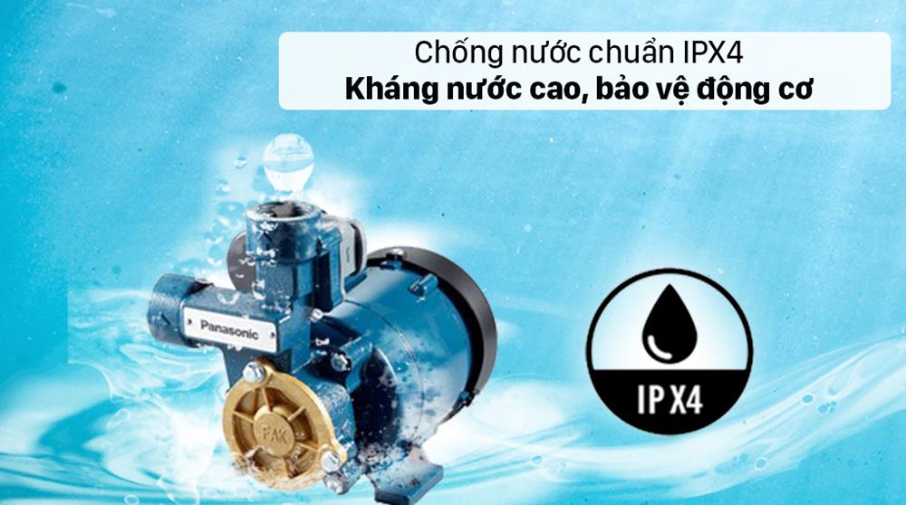 Được trang bị chuẩn chống nước IPX4, giúp máy có thể kháng nước nếu bị bắn vào bất kì vị trí nào, đảm bảo an toàn cho động cơ cũng như tăng tuổi thọ của máy.