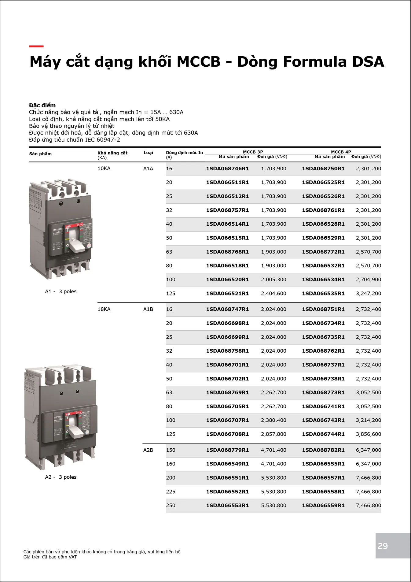 MCCB ABB 4P A2B Formula DSA 18kA 150A