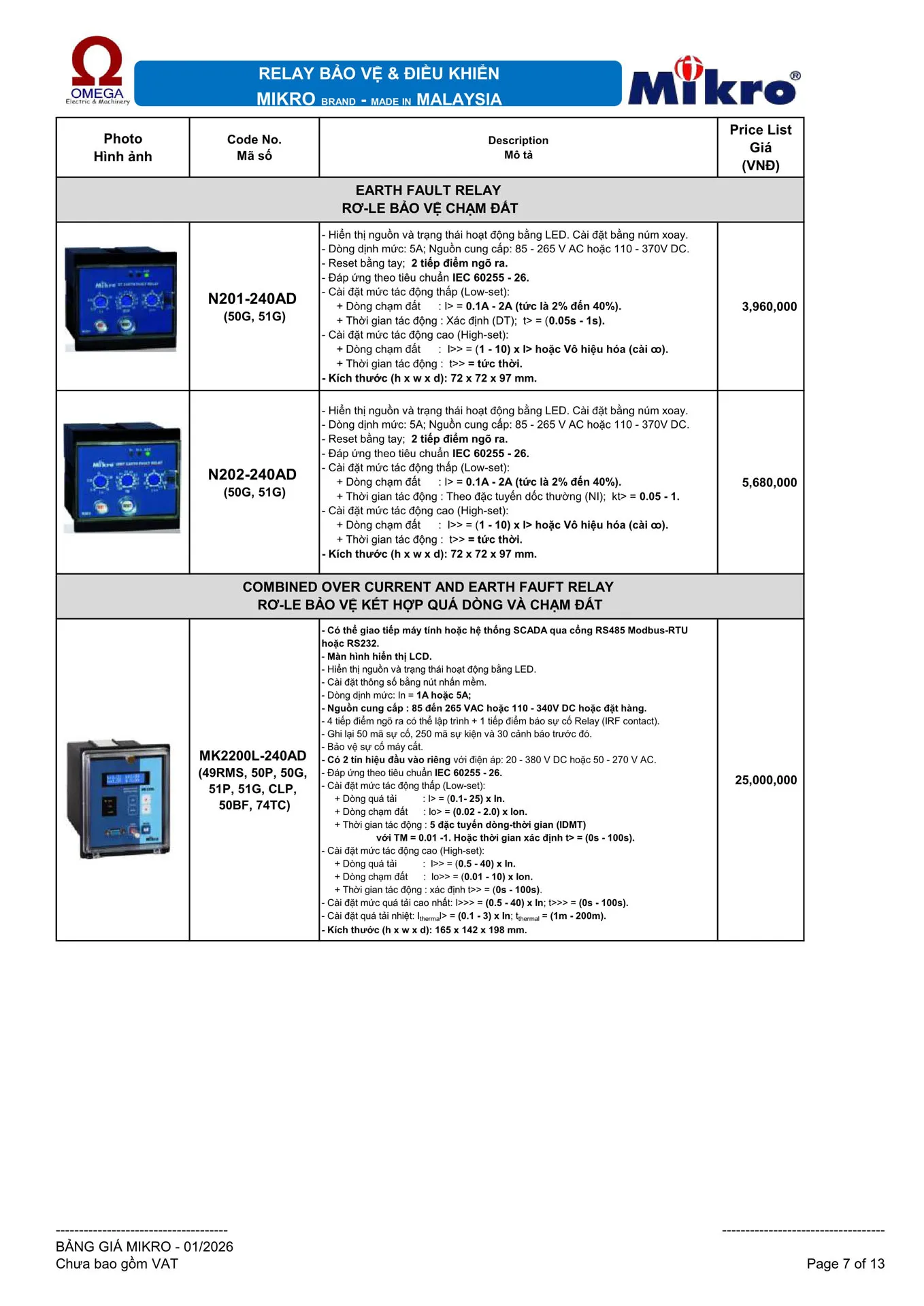 - Đáp ứng theo tiêu chuẩn IEC 60255 - 26.