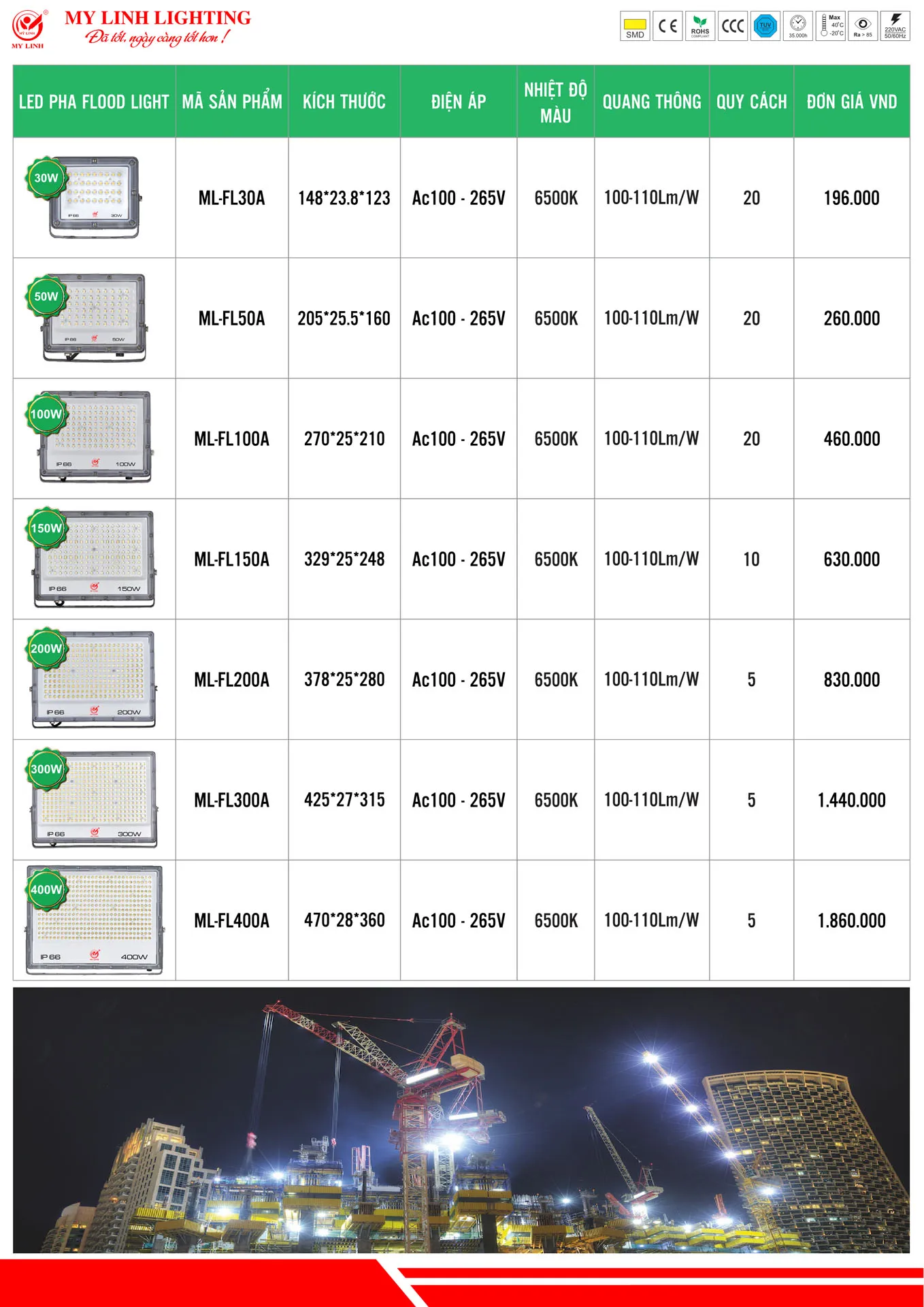- Quang thông:100-110lm/w