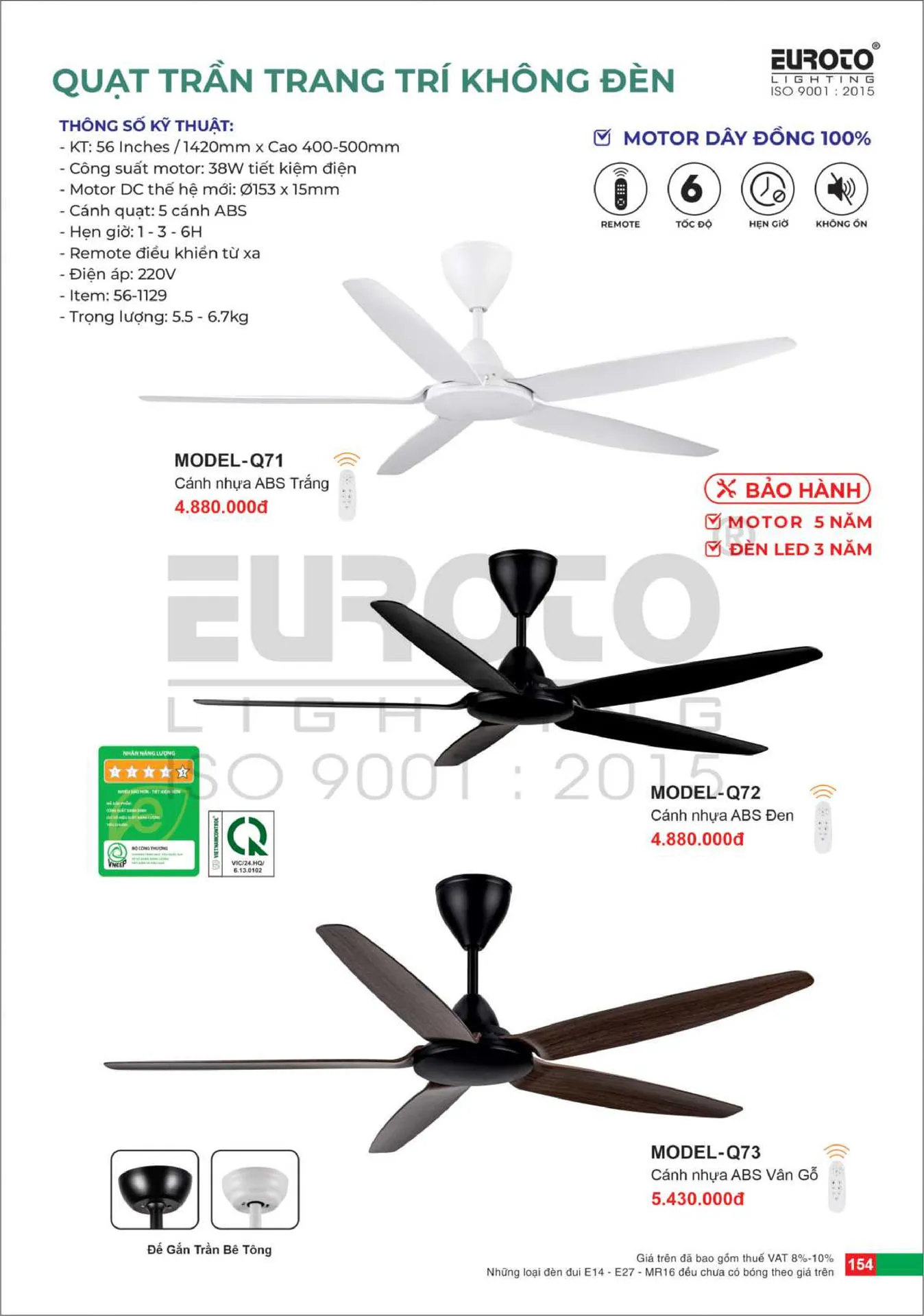 Quạt trần 5 cánh Euroto MODEL-Q71 Ø142cm