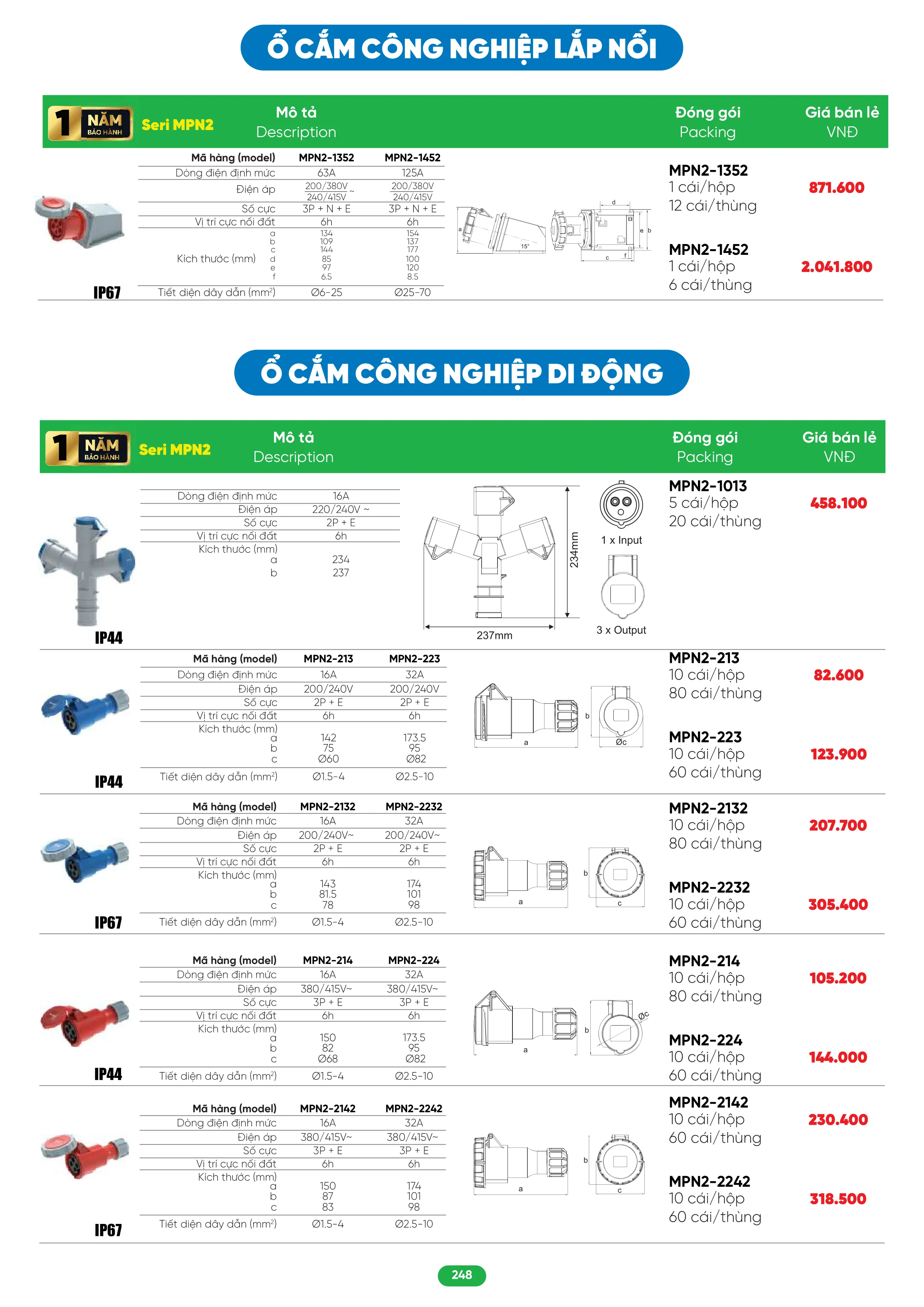 Ổ cắm công nghiệp 2P+E MPE series MPN2-1013 IP44