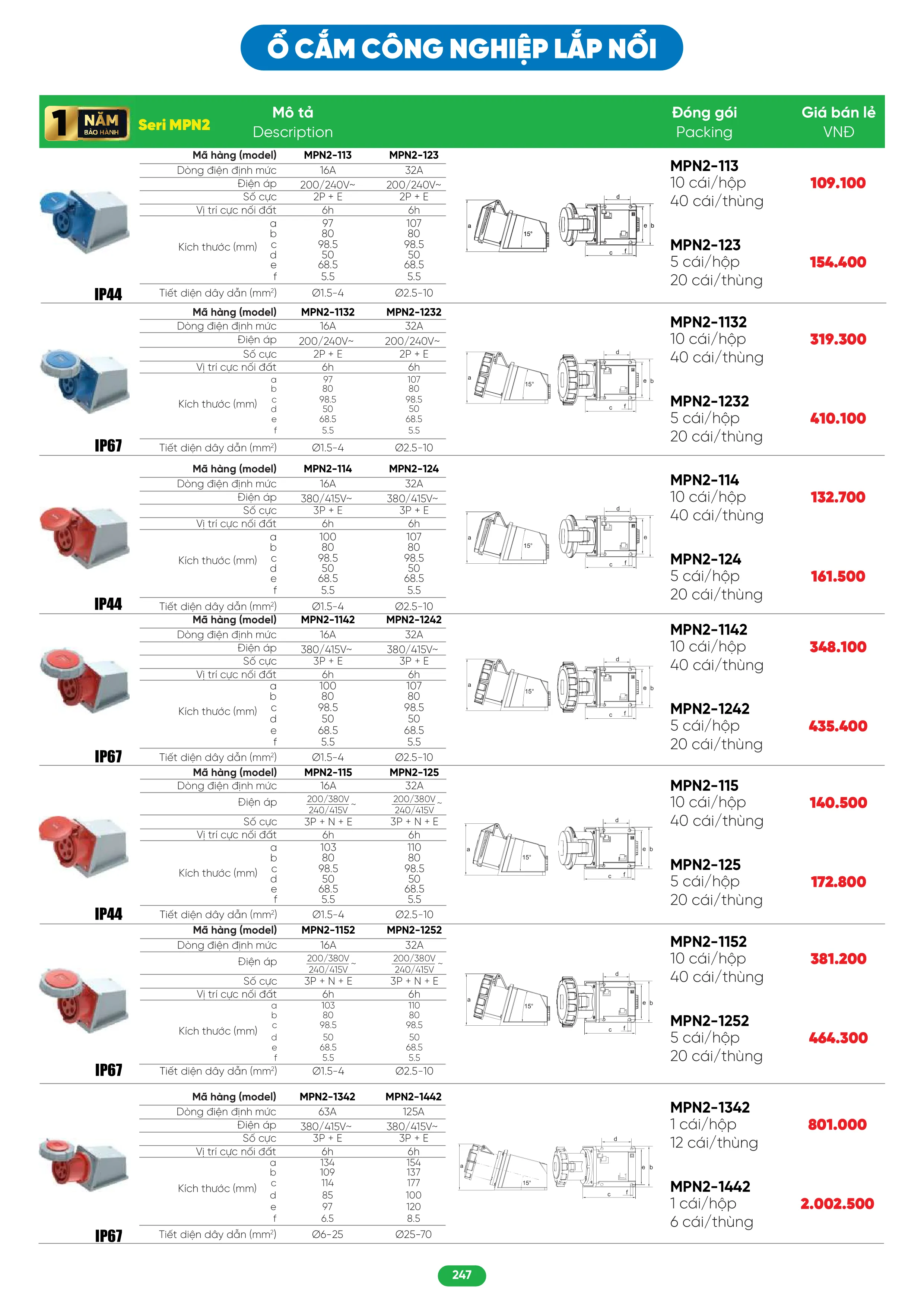 Ổ cắm công nghiệp MPE series MPN2 IP44