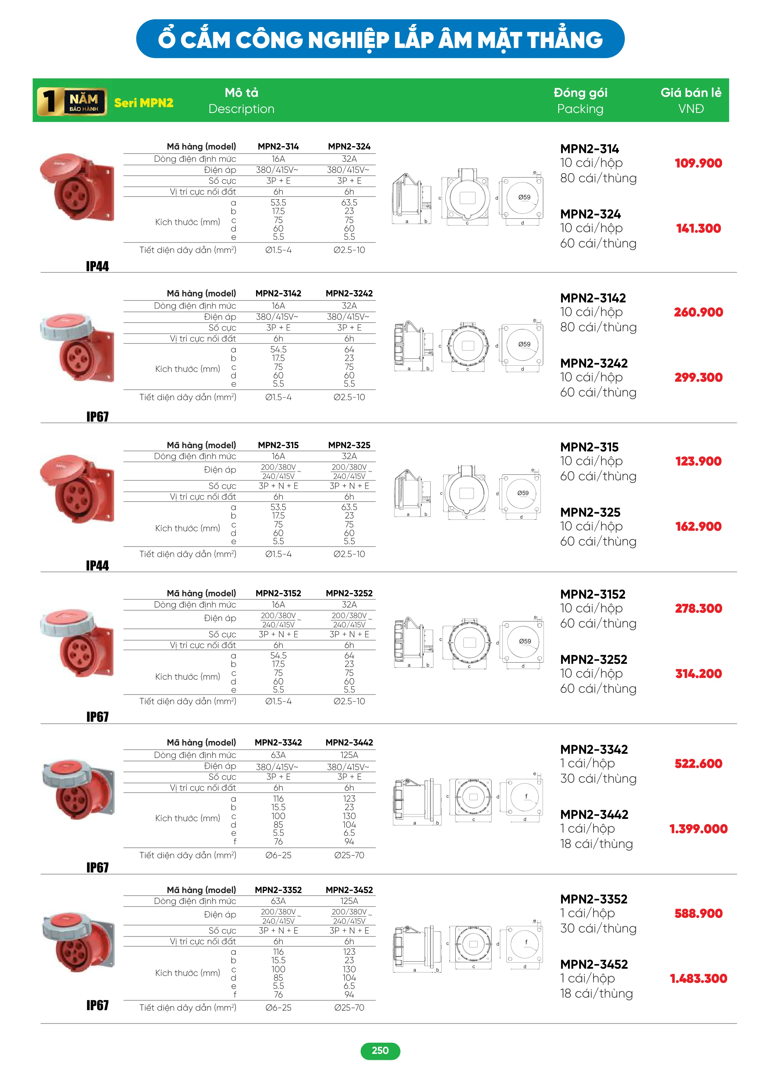 Ổ cắm công nghiệp 3 pha MPE series MPN2 IP67