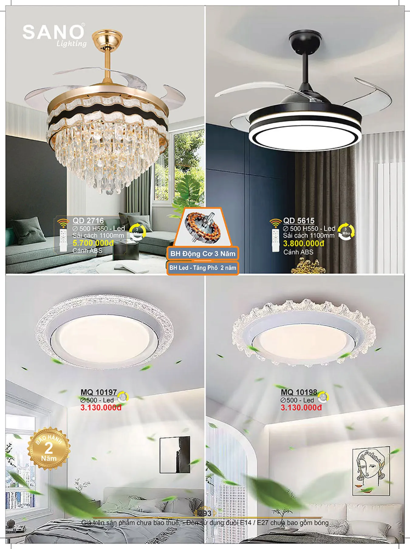 Đèn mâm + quạt không cánh Sano MQ 10197 Ø500