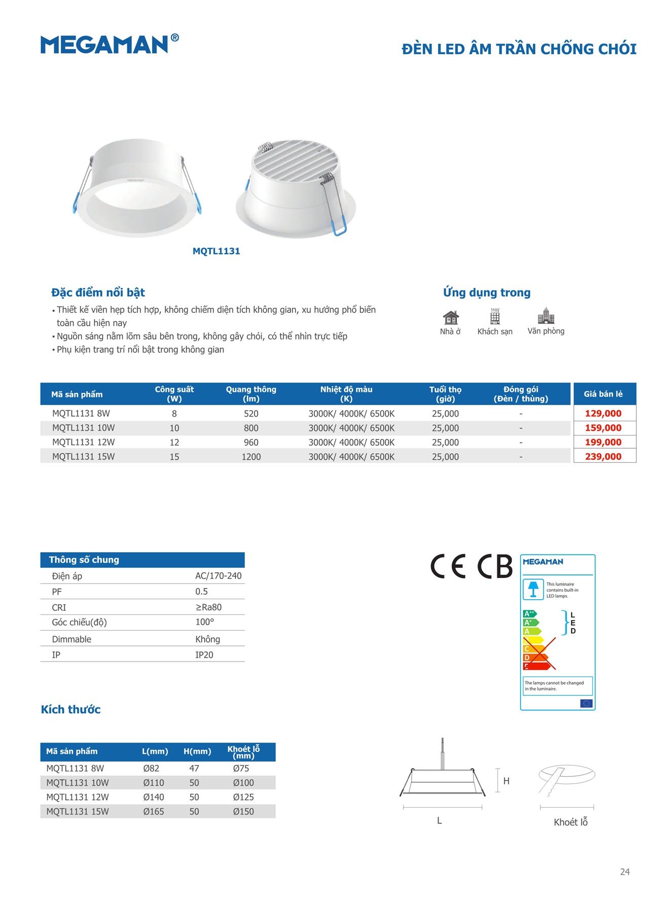 Ánh sáng trắng | MQTL1131 12W | 199.000 | 40% | 119.400 |