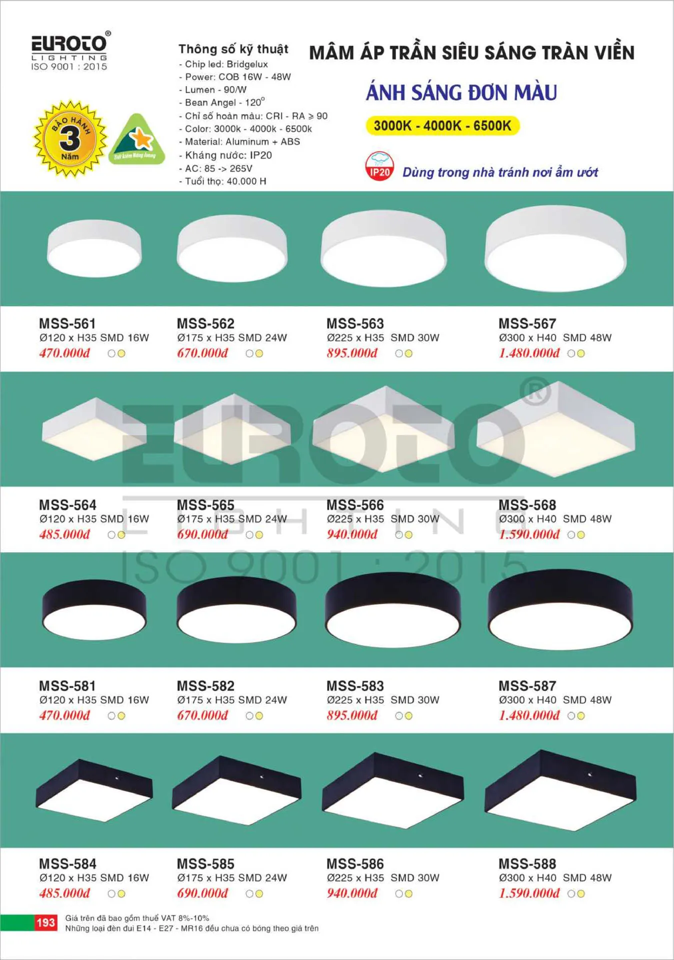 | Đặc điểm : | Đèn ốp trần vuông MSS-564 sử dụng bóng led tiết kiệm điện năng hơn so với đèn ốp trần compact - tuổi thọ cao |