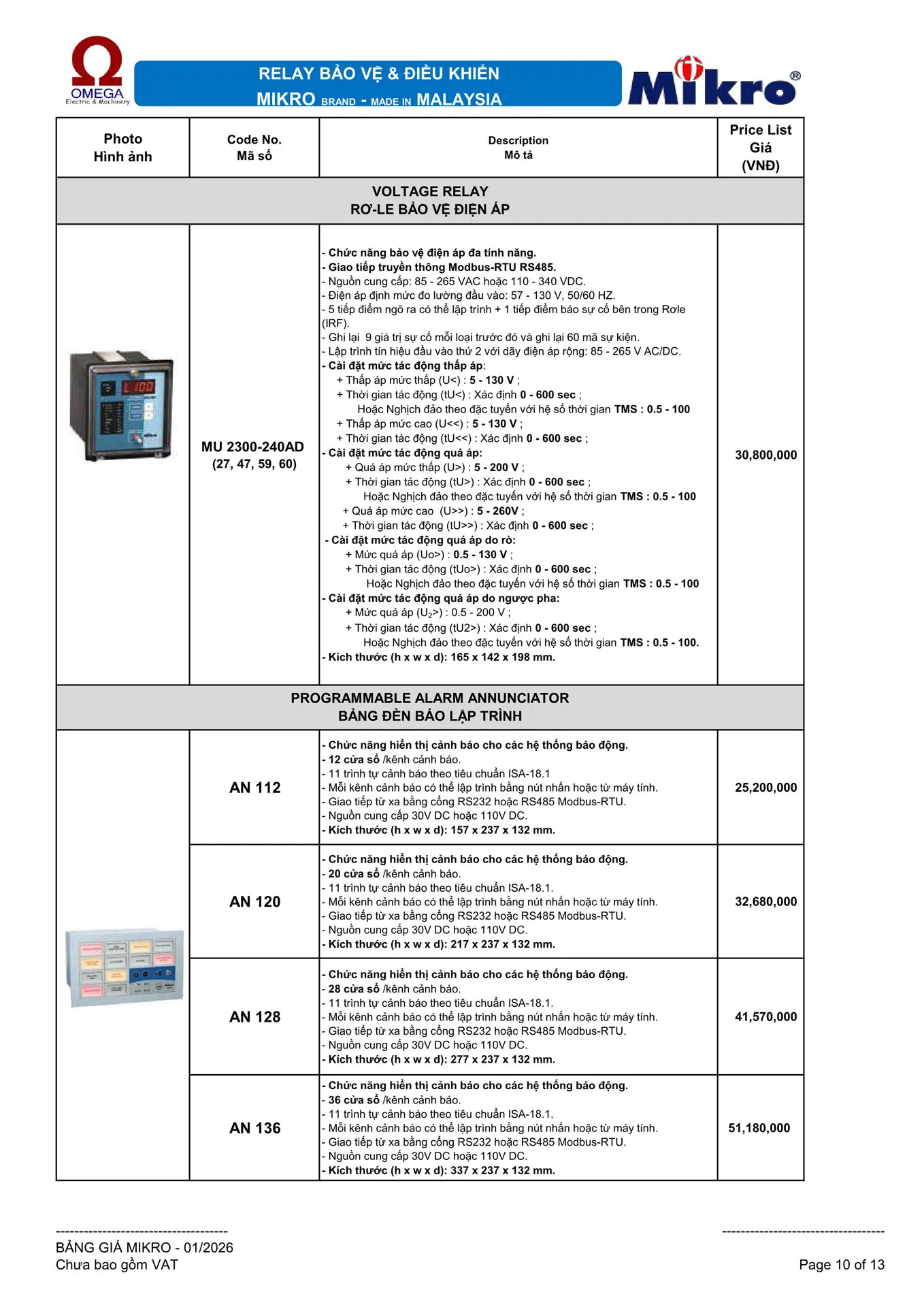 Rơle bảo vệ điện áp MIKRO MU 2300-240AD (27, 47, 59, 60)