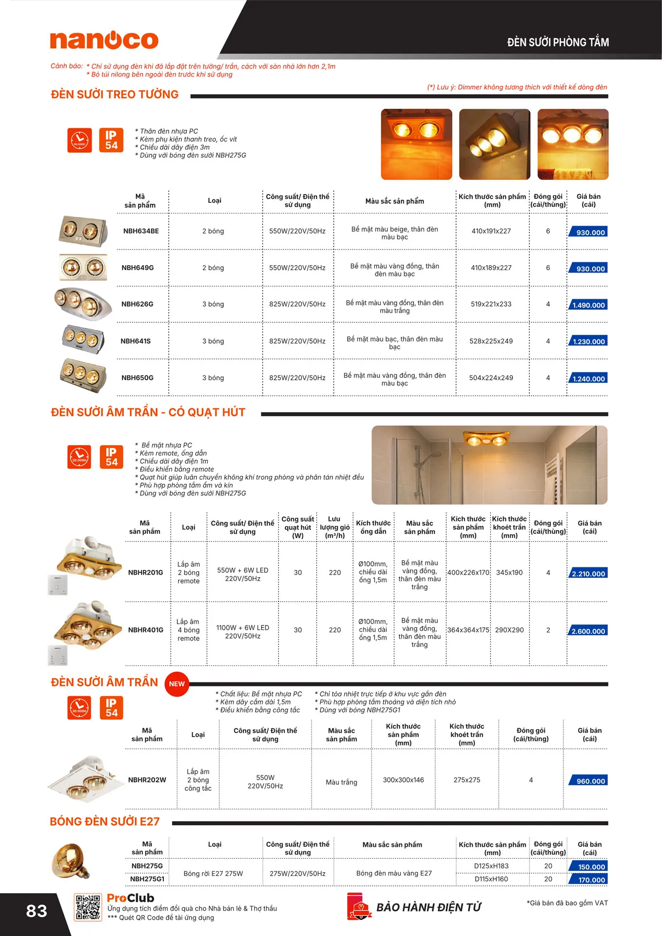 Đèn sưởi âm trần Nanoco NBHR202W 550W