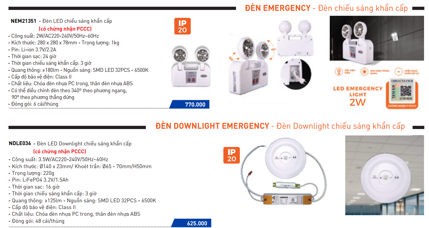 - Thời gian chiếu sáng khẩn cấp: 3 giờ