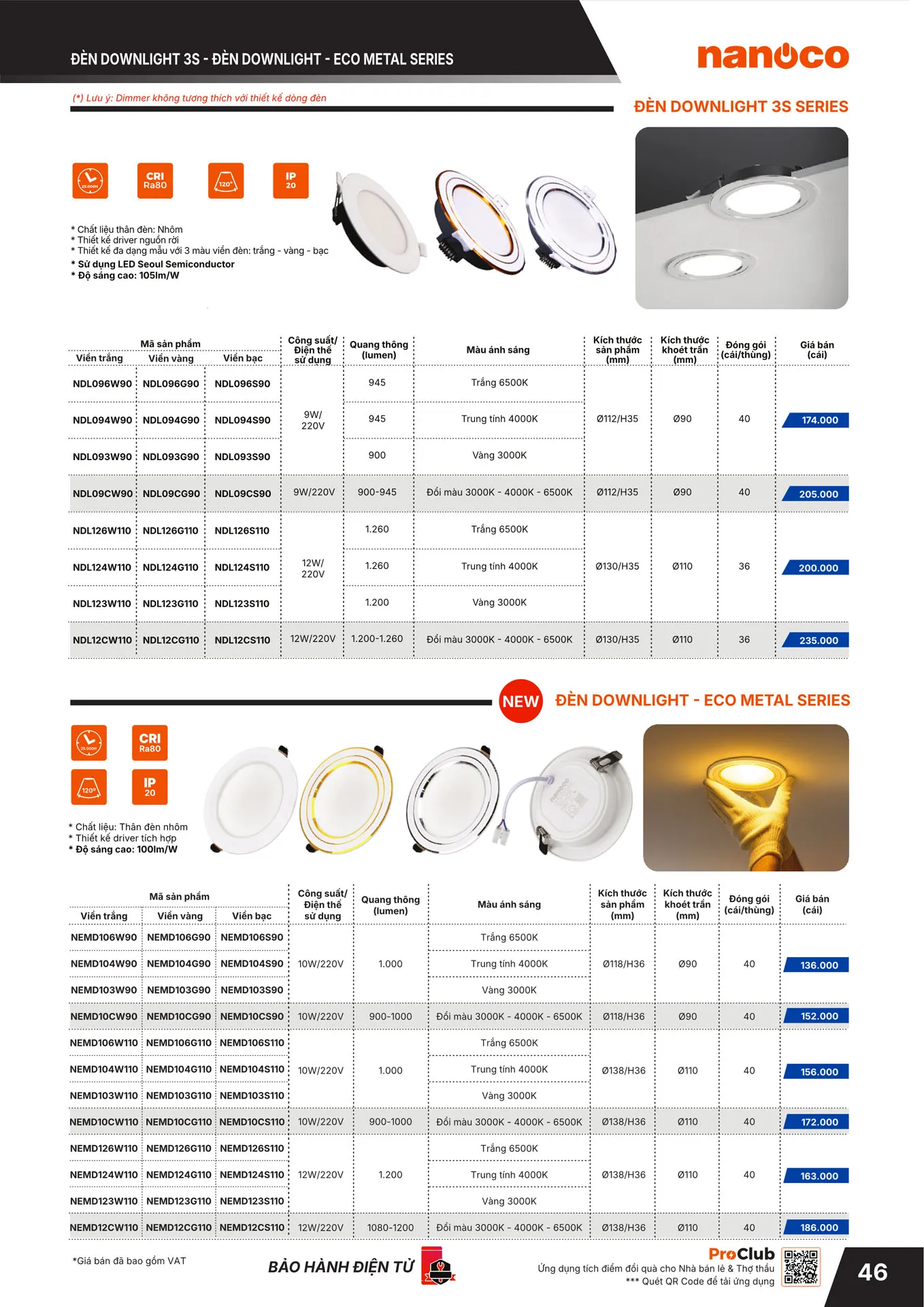 Đổi màu 3000-4000-6500K | NEMD12CW110 | 186.000 | 40% | 111.600 |