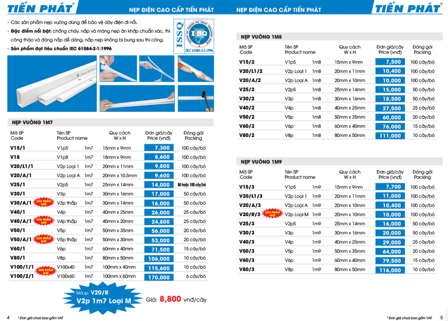 V2p loại 1 | V20/L1/4 | 11.400 | 20% | 9.120 |