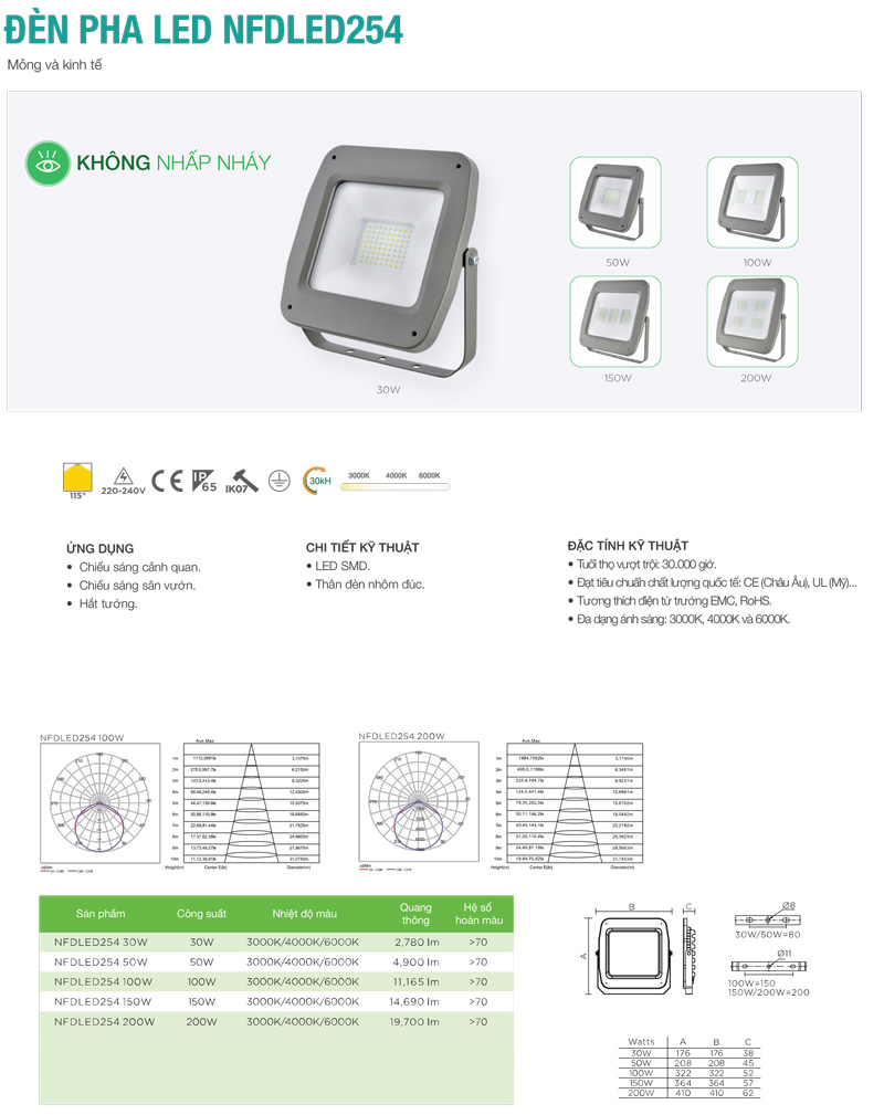 Thông số kỹ thuật đèn pha LED NFDLED254