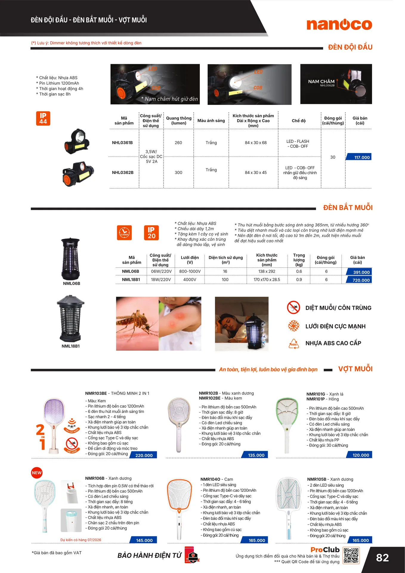 Vợt muỗi thông minh 2 in 1 Nanoco NMR103BE
