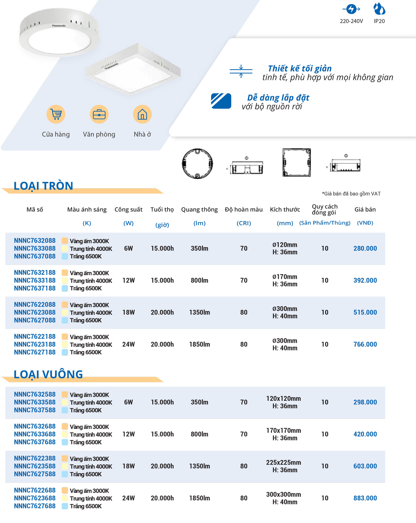 - Kích thước khoét lỗ: Ø90mm