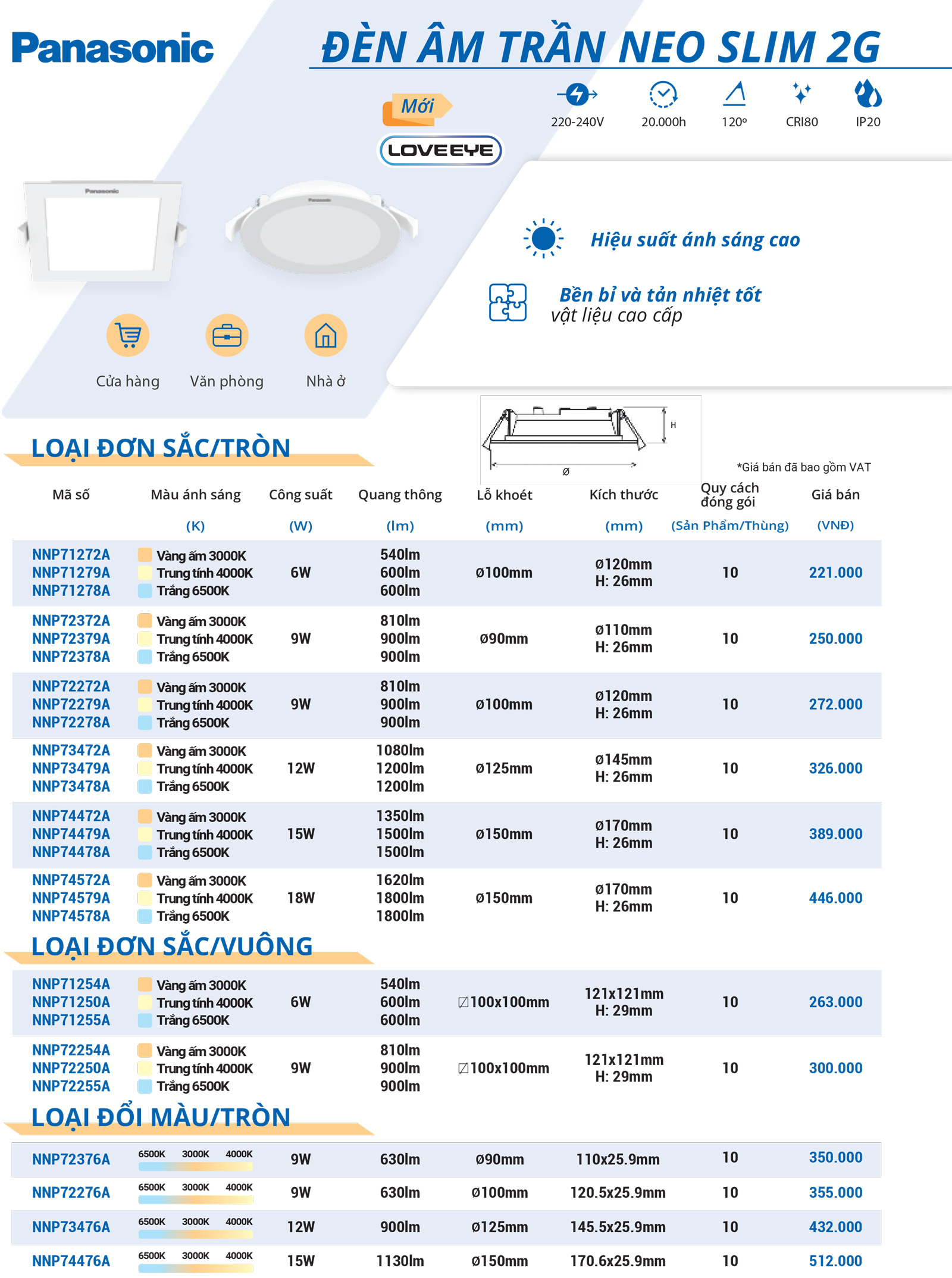 Ánh sáng trắng | NNP72378A | 250.000 |