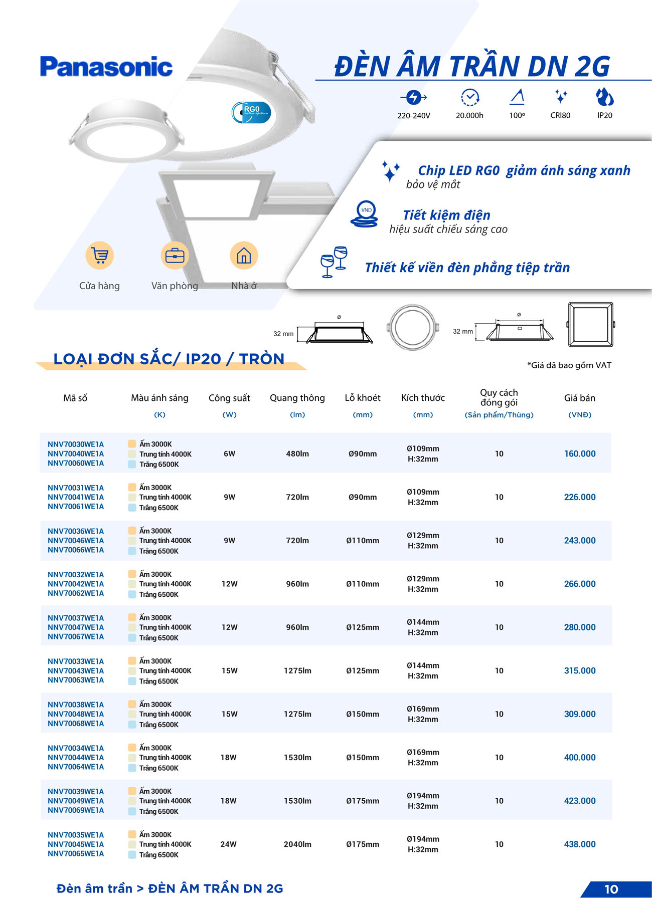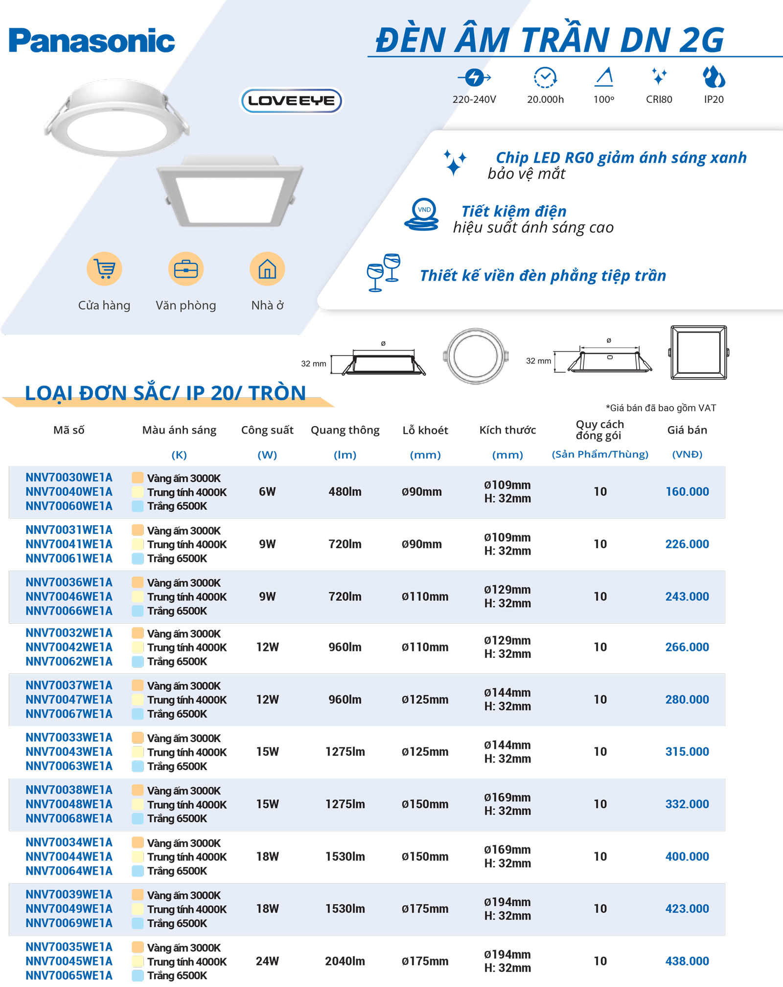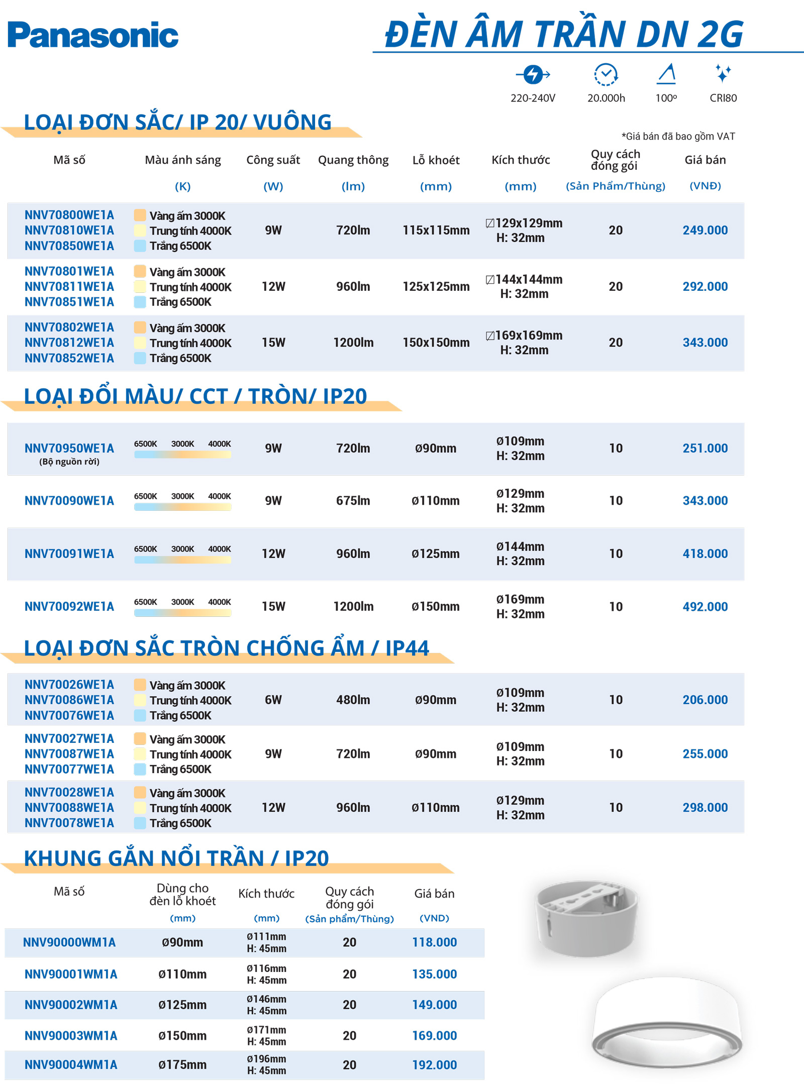 Ánh sáng trắng | NNV70061WE1A | 226.000 | 45% | 124.300 |