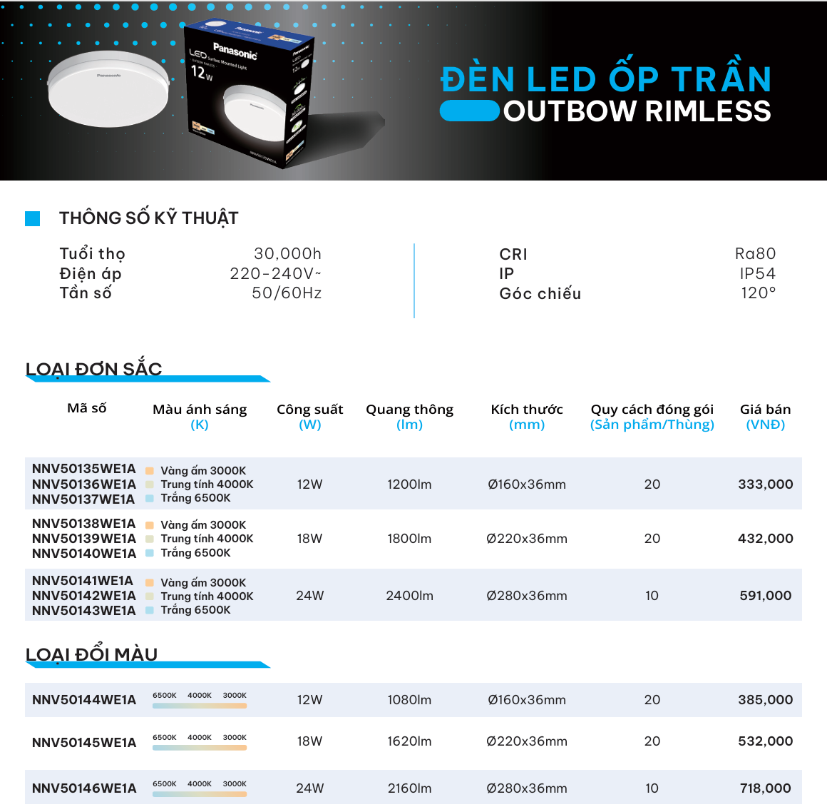 Ánh sáng trung tính | NNV50139WE1A | 432.000 | 40% | 259.200 |