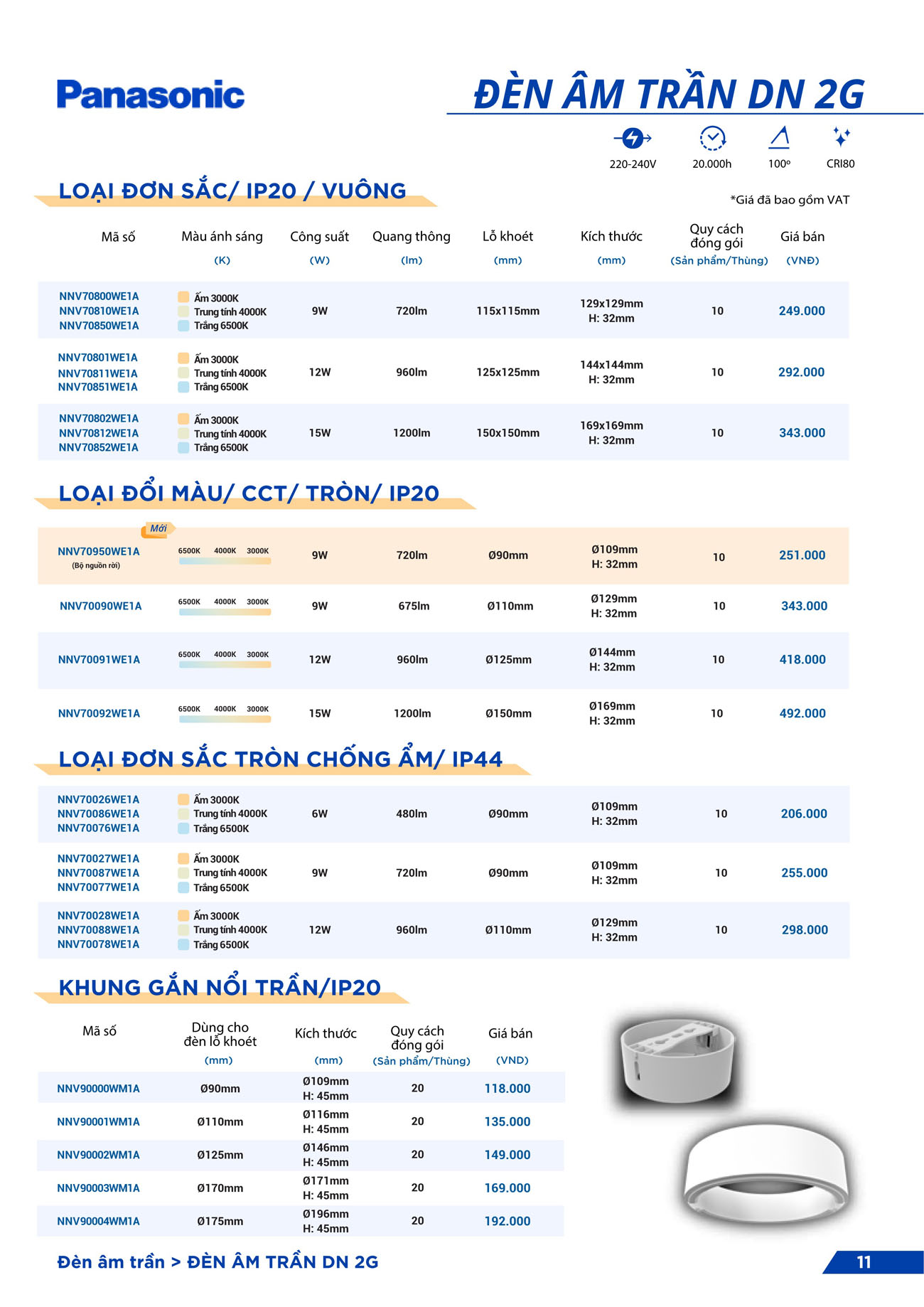LED downlight DN 2G đổi màu (Bộ nguồn rời) 9W